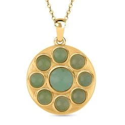 Grüner Aventurin Halskette Ca. 50 Cm Edelstahlca. 5.00 Ct, Goldfarben