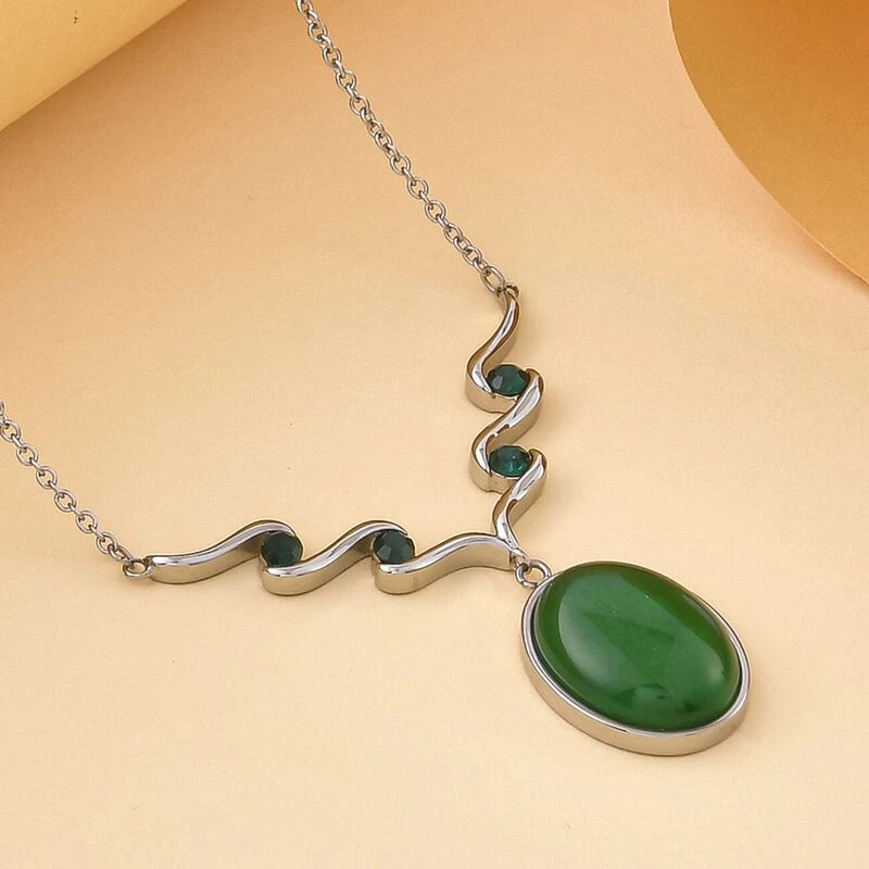 Das Design dieser Halskette zeichnet sich durch die grünen Farbtöne eines Aventurins und 4 grüne Kristalle aus, die wie ein Wirbelmuster aussehen. Die robuste Halskette ist das perfekte Party-Accessoire.