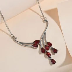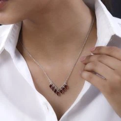 Rotes Granat Collier, Ca. 50 Cm, 925 Silber Mit Edelstahl Kette Ca. 4.21 Ct
