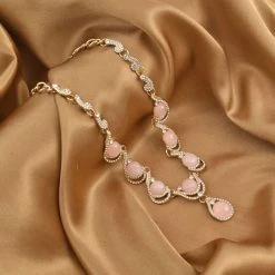 Rosenquarz, Weißes Kristall Collier, Ca. 50 Cm, Golden Ca. 30.00 Ct
