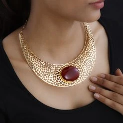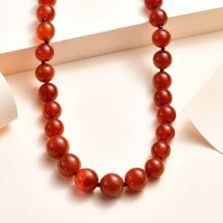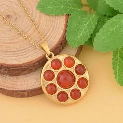 Roter Achat Halskette, Ca. 50 Cm Edelstahl Ca., Goldfarben 5.00 Ct