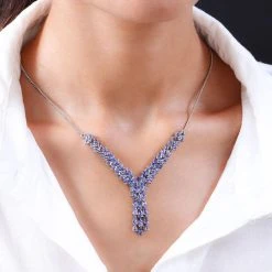 Tansanit Halskette, Ca. 50 Cm, 925 Silber Rhodiniert Ca. 125.00 Ct