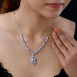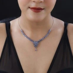 Tansanit Halskette Ca. 45 Cm 925 Silber Platiniert Ca. 7.68 Ct