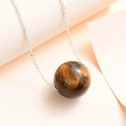 Tigerauge Halskette Ca. 50 Cm 925 Silber Ca. 50.00 Ct