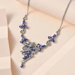 AAA Tansanit Collier, Ca. 45 Cm, 925 Silber Platiniert Ca. 2.45 Ct
