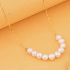 AAA Weiße Süßwasser Perle Halskette, (7-9mm), Ca. 45 Cm 925 Silber Vergoldet