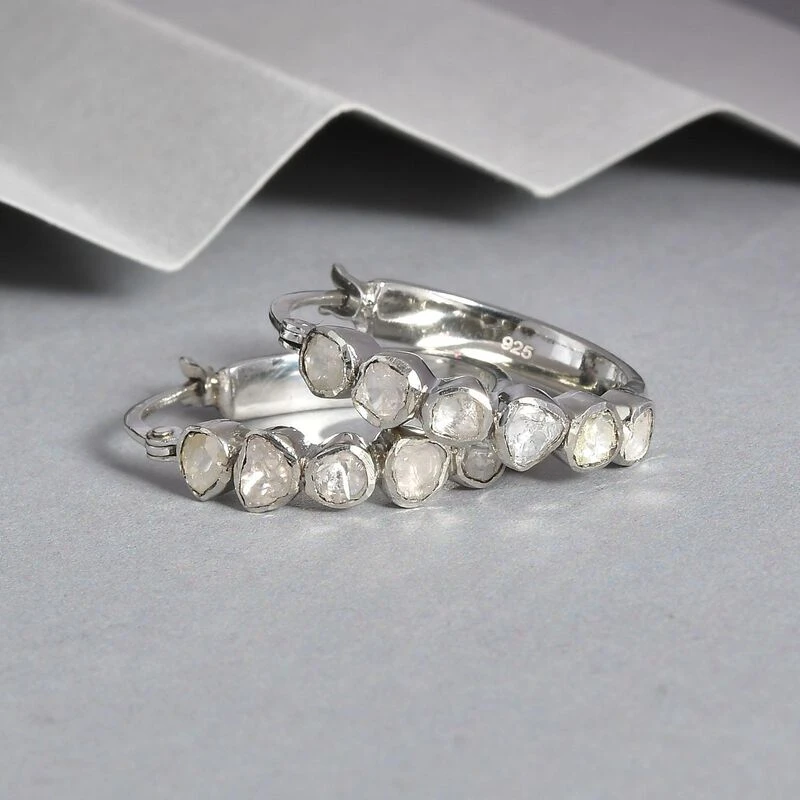 Handgearbeitete Polki Diamant-Creolen, 925 Silber Ca. 0.50 Ct