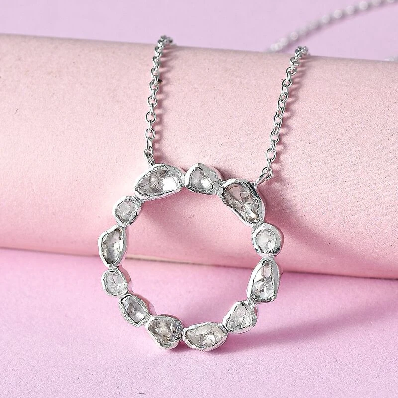Kreis des Lebens Halskette mit Polki Diamant (0,50 ct.) in platiniertem Silber (3,8g). Diamantschmuck zu exklusiven Preisen nur für Sie – jetzt shoppen!