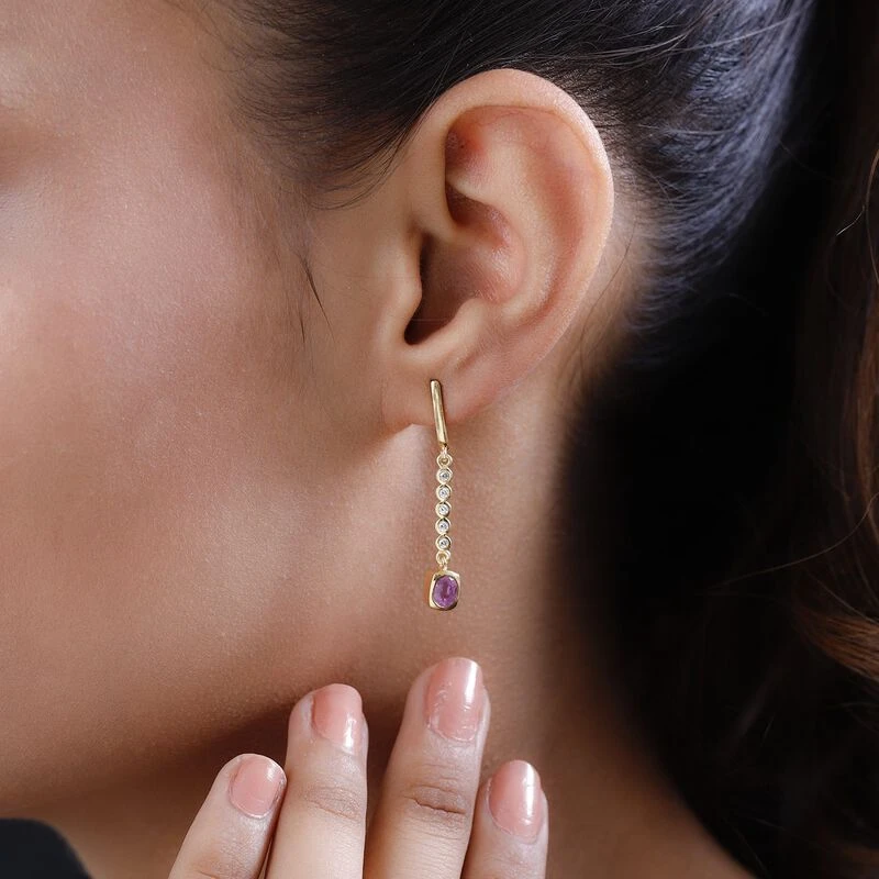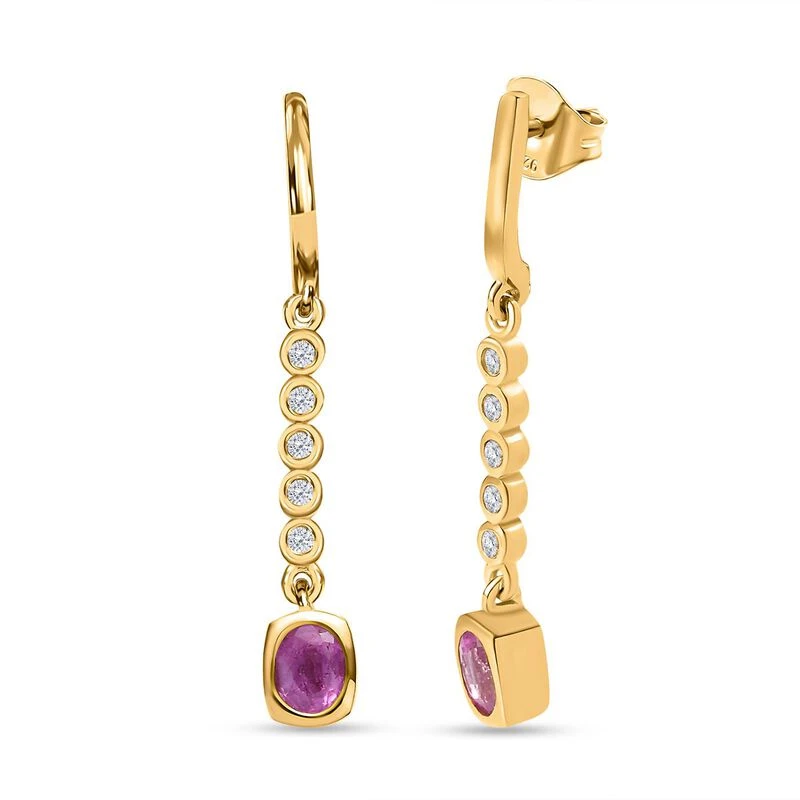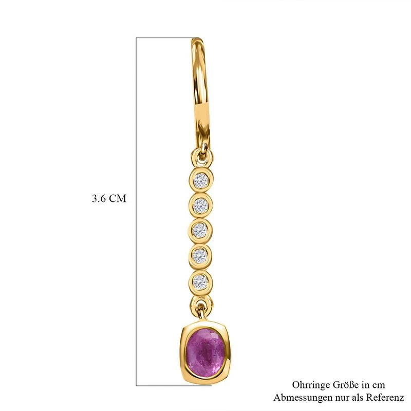 Ilakaka Rosa Saphir (Fissure Gefüllt), Weißer Zirkon Ohrringe, 925 Silber Vergoldet Ca. 1.21 Ct