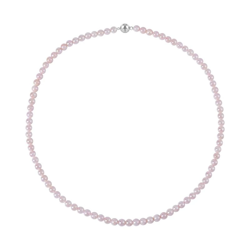 88 Akoya-Perlen der Extraklasse mit unverwechselbarem Glanz und perfekter runder Form sind in dieser Halskette für Damen aufgereiht. Die Perlen zeigen einen leuchtenden Schimmer, der von Silber bis Rosa reicht, und die 0,66 Gramm Halskette wird mit einem Magnetverschluss aus rhodiniertem Silber verschlossen.