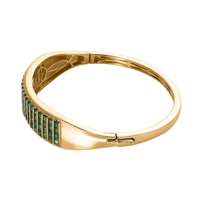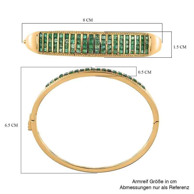 Kagem Sambischer Smaragd Armreif Ca. 19 Cm 925 Silber Gelbgold Vermeil Ca. 5.84 Ct