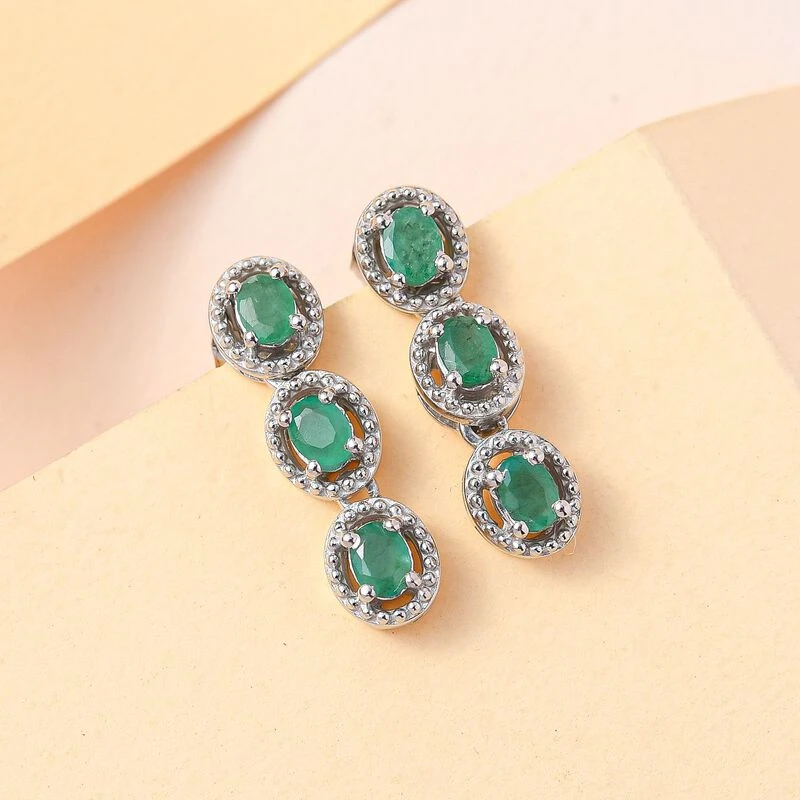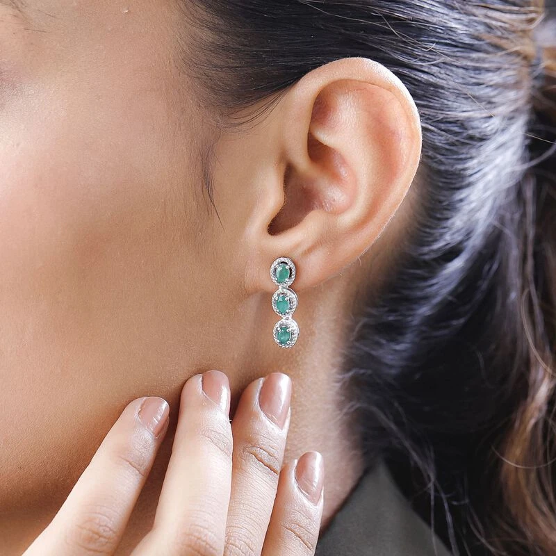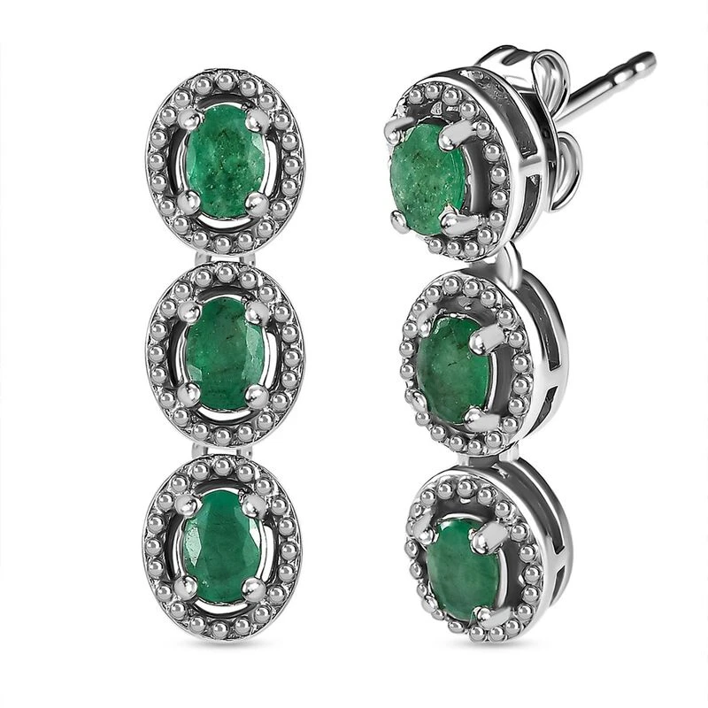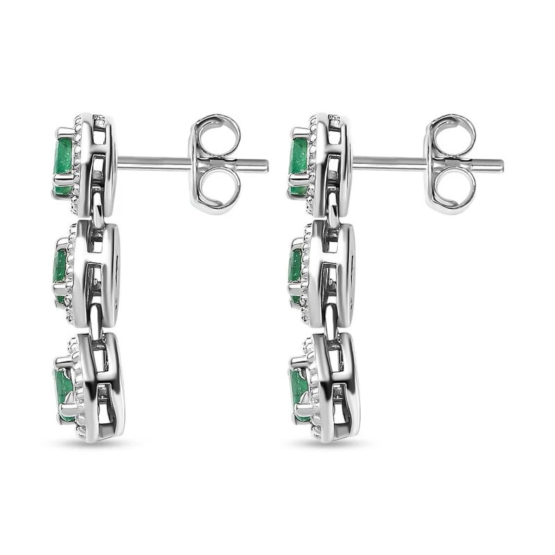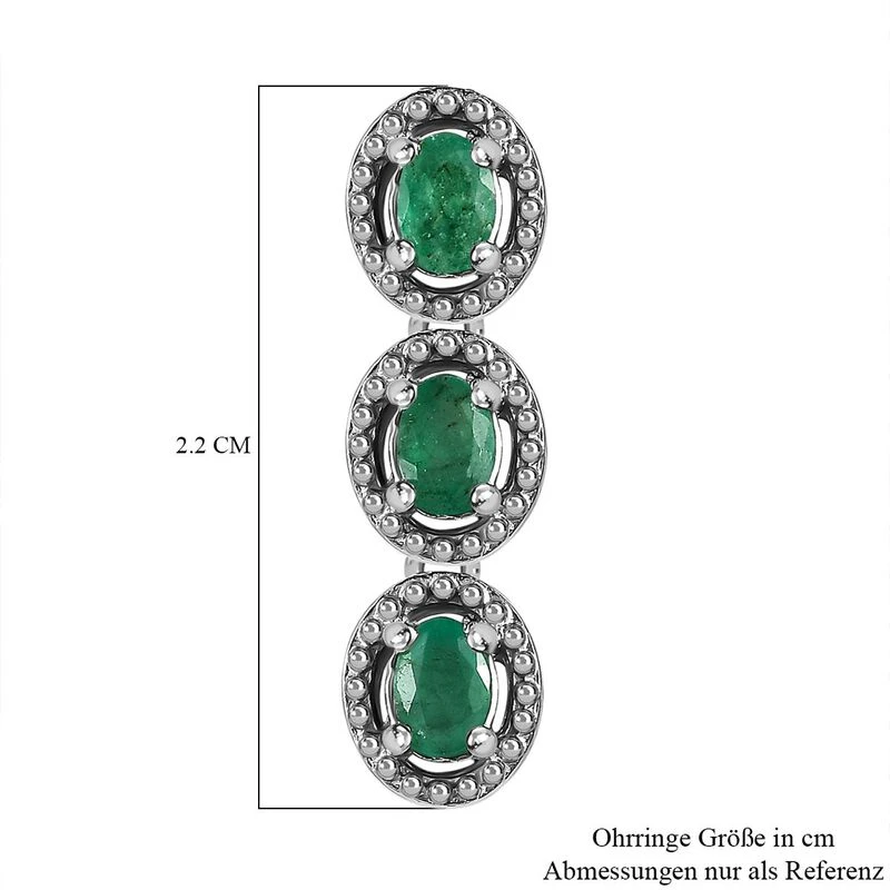 Kagem Sambischer Smaragd Ohrringe, 925 Silber Platiniert Ca. 0.82 Ct