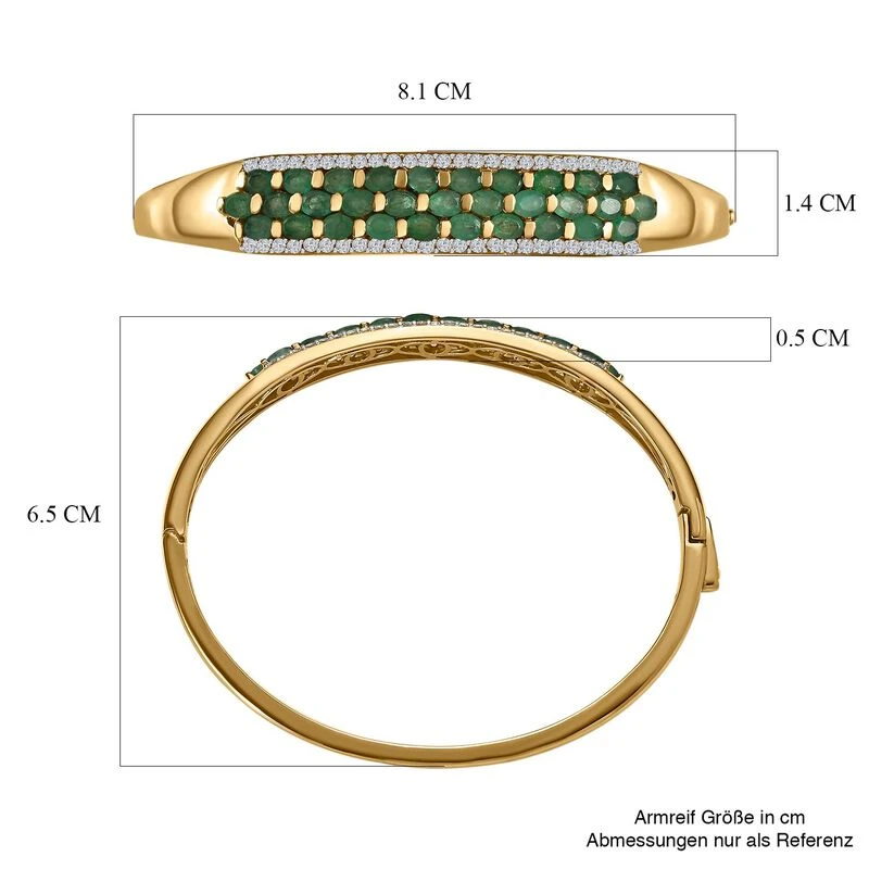 Kagem Sambischer Smaragd, Weißer Zirkon Armreif, Ca. 19 Cm, 925 Silber Gelbgold Vermeil, Ca. 6.74 Ct