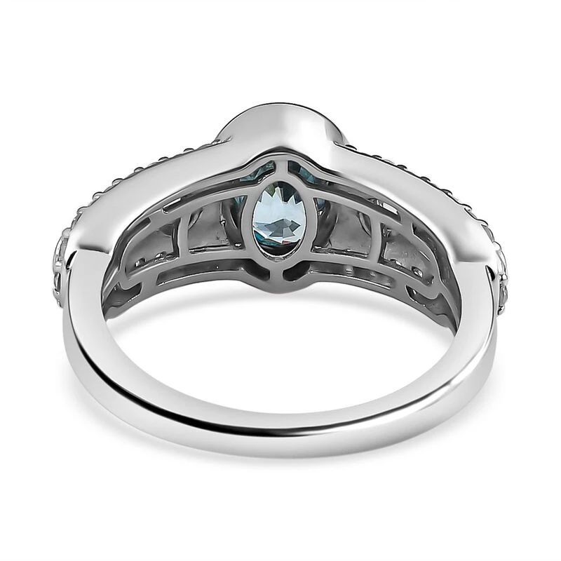 Kambodschanischer, Blauer Zirkon, Weißer Zirkon Ring, 925 Silber Platiniert (Größe 18.00) Ca. 2.68 Ct