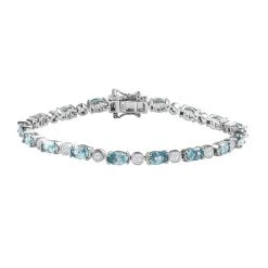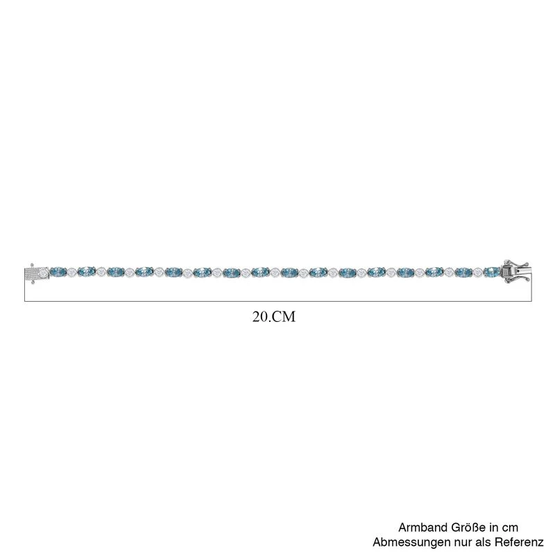 Kambodschanisches, Blaues Und Weißes Zirkon Armband, Ca. 19 Cm, 925 Silber Platiniert Ca. 12.69 Ct