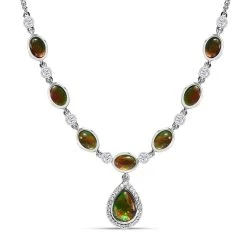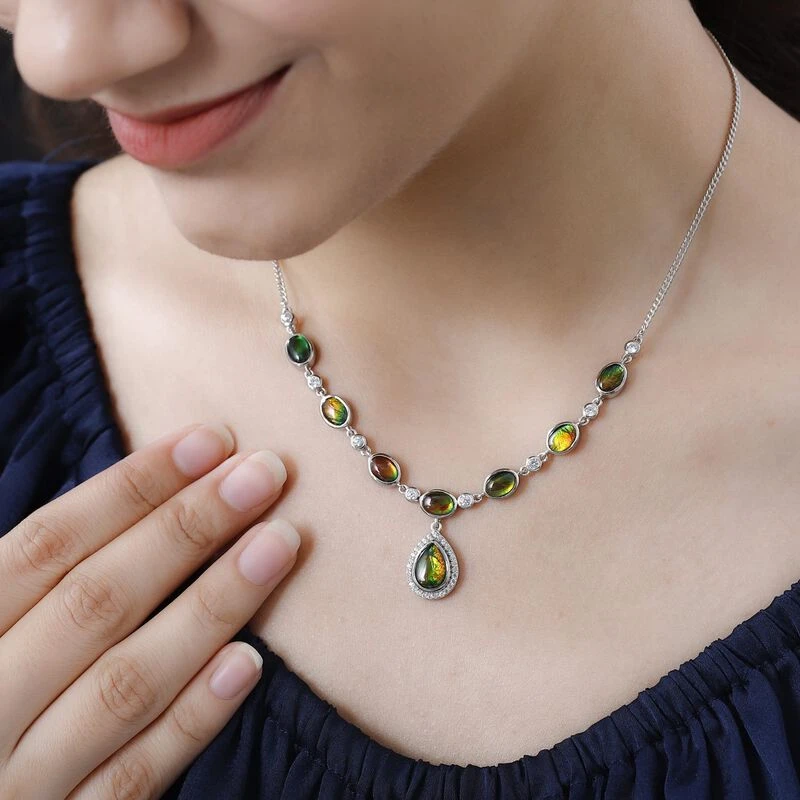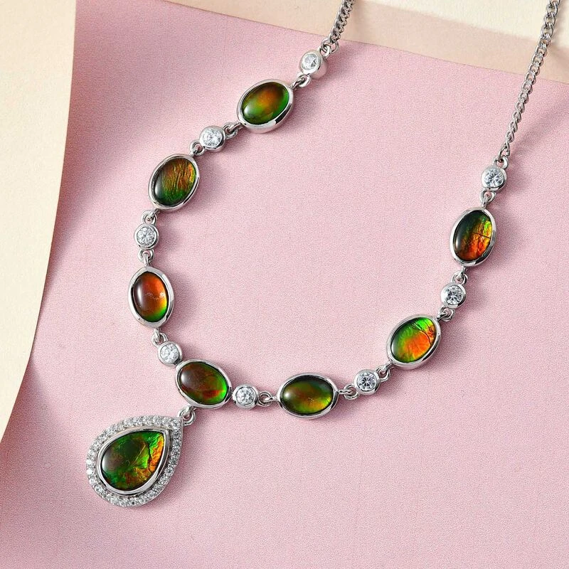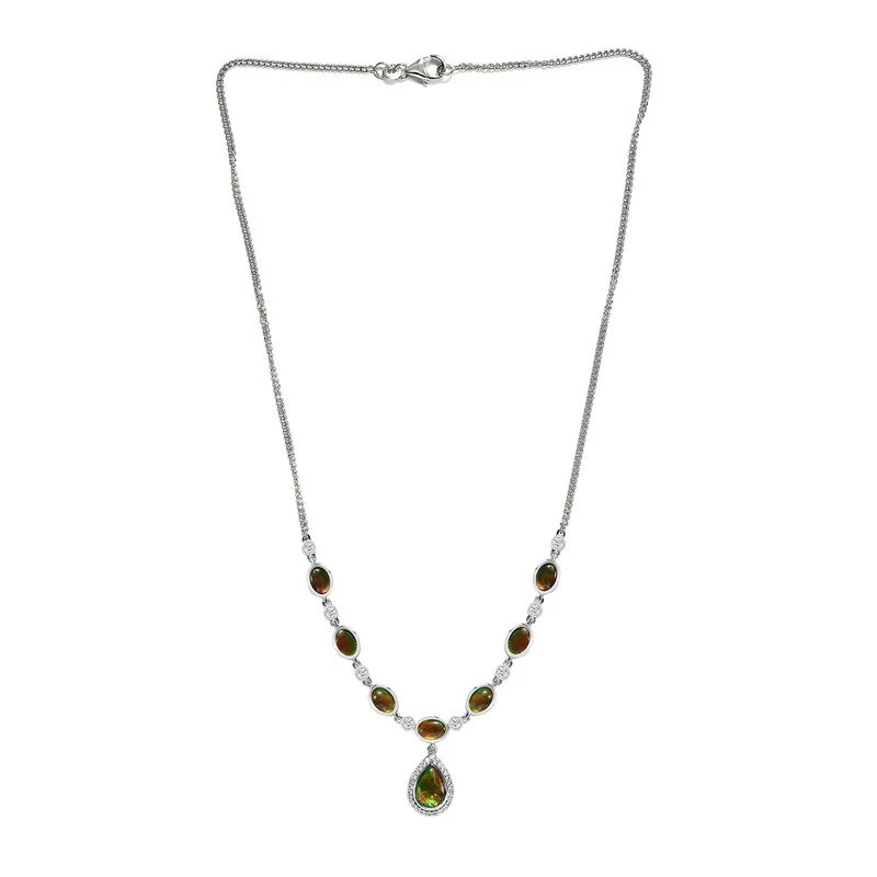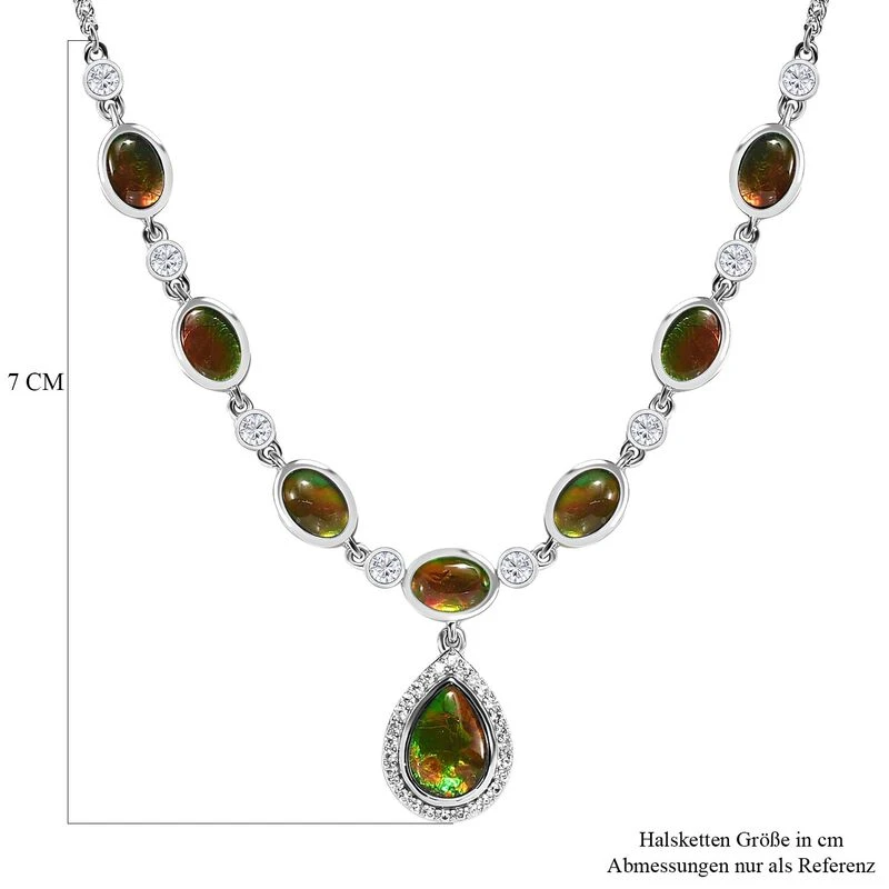 Kanadische Ammolit Halskette, Ca. 45 Cm, 925 Silber Platiniert Ca. 8.49 Ct
