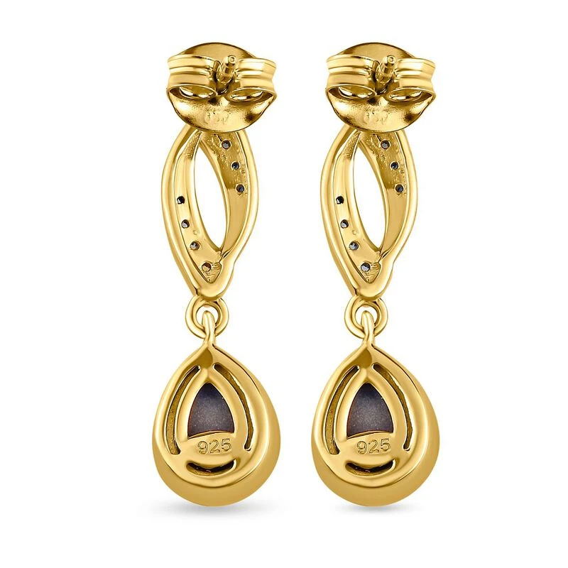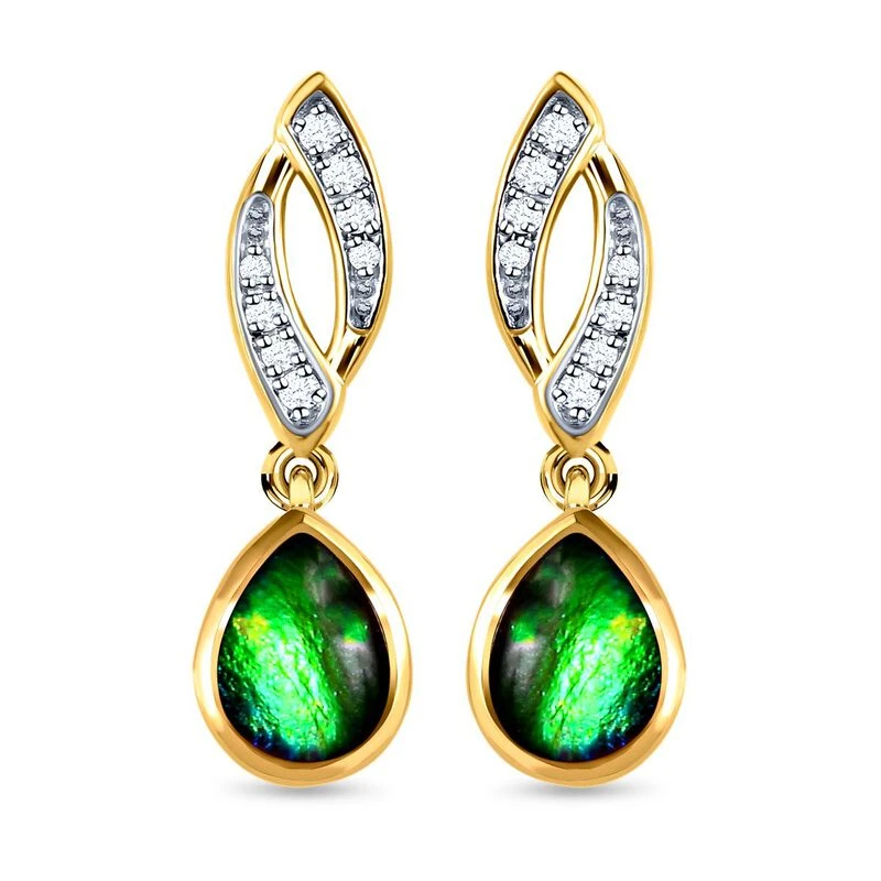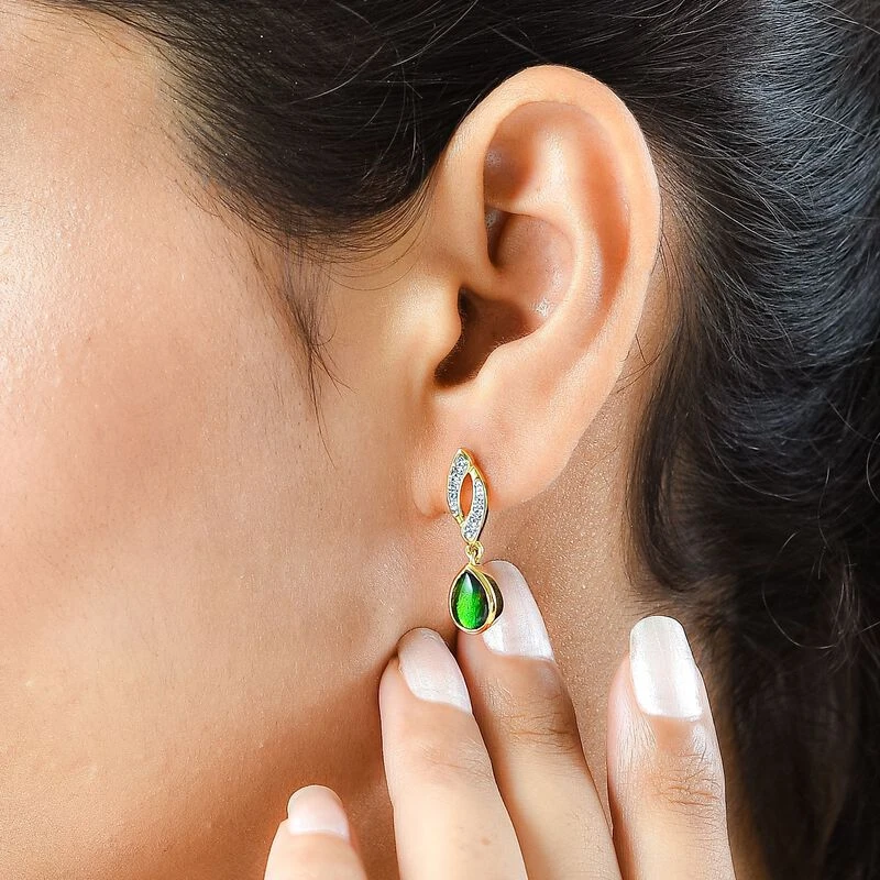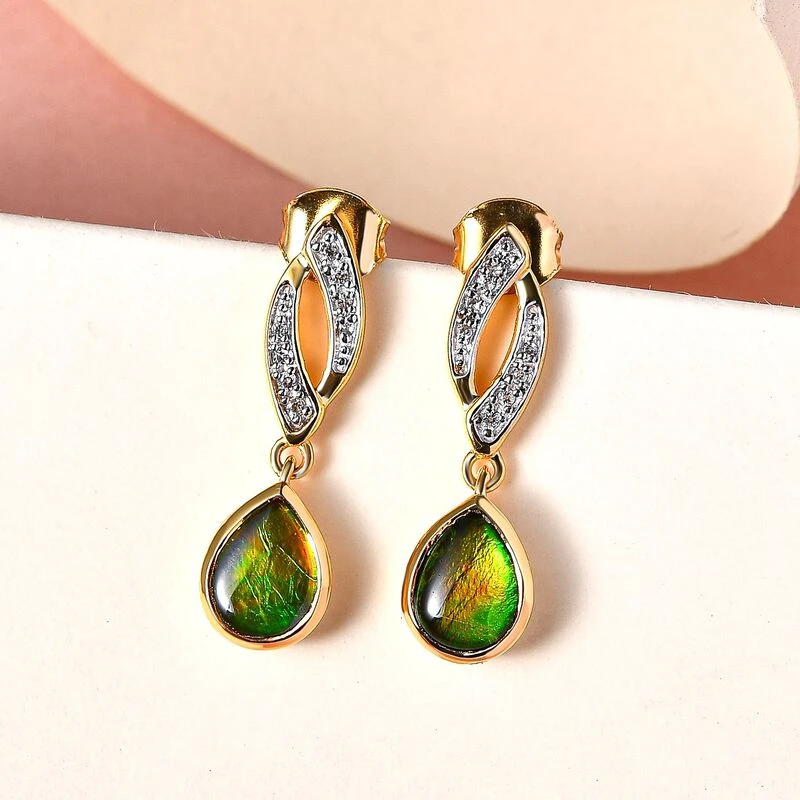 Kanadischer Ammolit Und Weiße Zirkon-Ohrringe, 925 Silber Gelbgold Vermeil Ca. 2.14 Ct