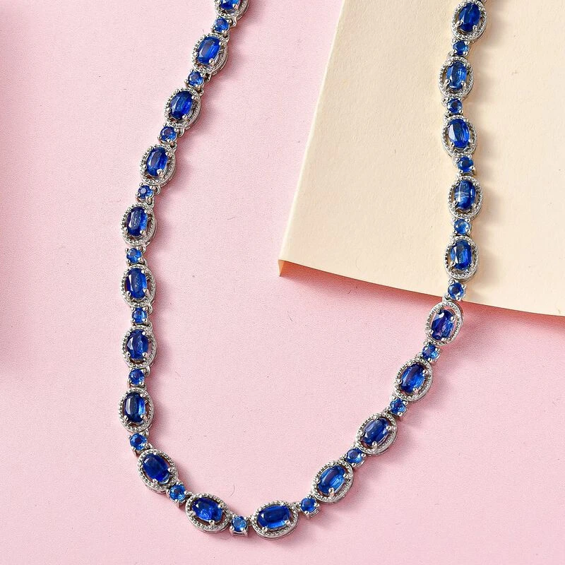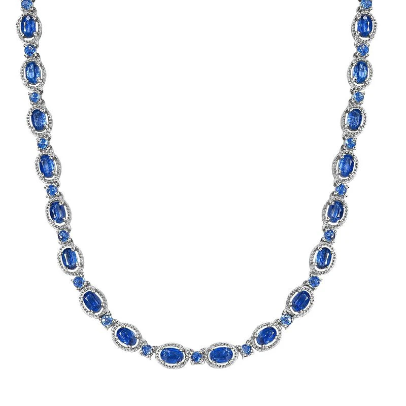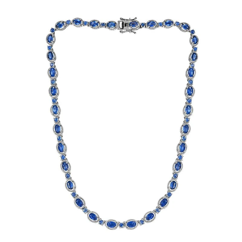 Kaschmir Kyanit Halskette, Ca. 45 Cm, 925 Silber Platiniert Ca. 27.60 Ct