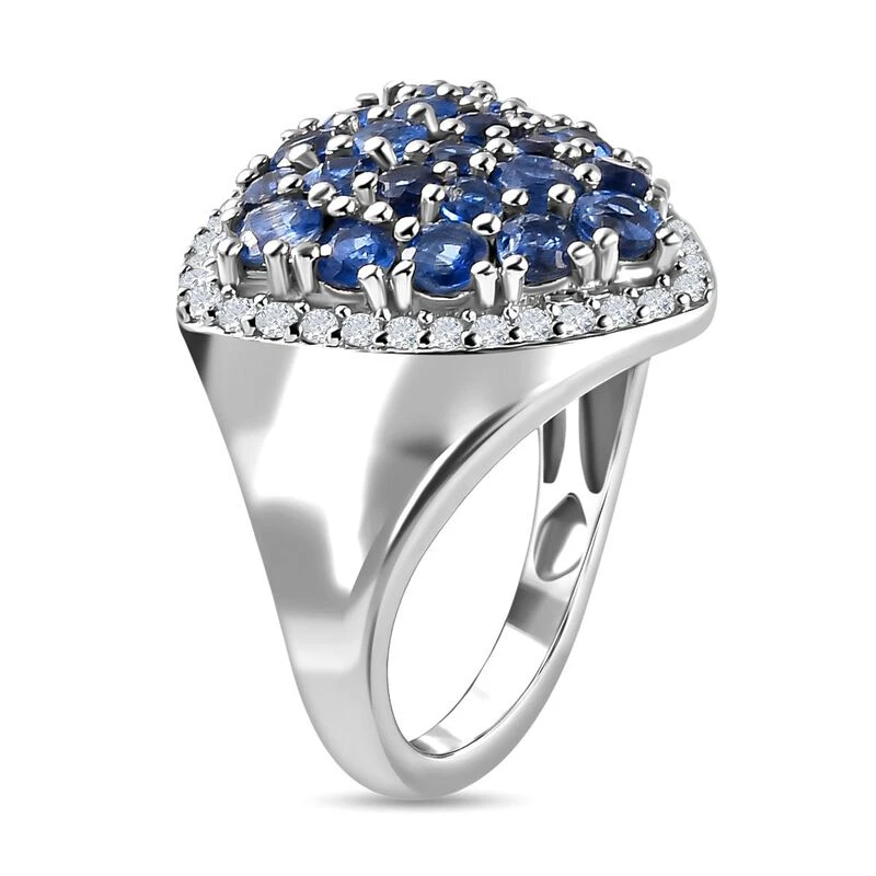 Kaschmir Kyanit Und Zirkon Ring, 925 Silber Platiniert (Größe 17.00) Ca. 3.92 Ct