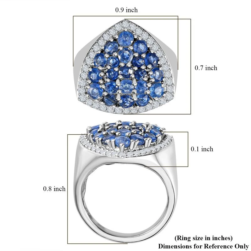 Dieser Ring ist ein atemberaubendes Schmuckstück mit 21 wunderschönen Kyaniten, die in Platin über Sterlingsilber gefasst ist. Dieser 925er Cluster-Ring ist mit zusätzlichen 36 Zirkonen versehen, die einen Hauch von Eleganz und Weiblichkeit verleihen. Der Kaschmir-Kyanit ist ein sehr begehrter Edelstein, der für seine tiefblaue Farbe bekannt ist.Dieses Schmuckstück ist perfekt für alle, die ein einzigartiges, anspruchsvolles Accessoire suchen, das alle Blicke auf sich zieht.