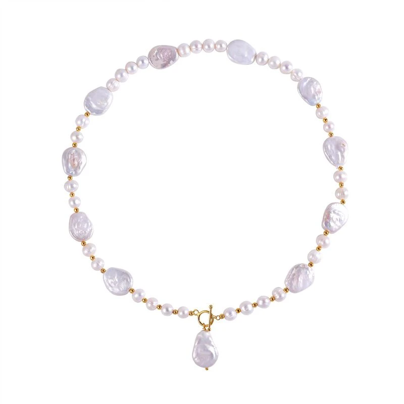 Keshi Perle, Weiße Süßwasser Perle Halskette, Ca. 53.25 Cm 925 Silber Vergoldet