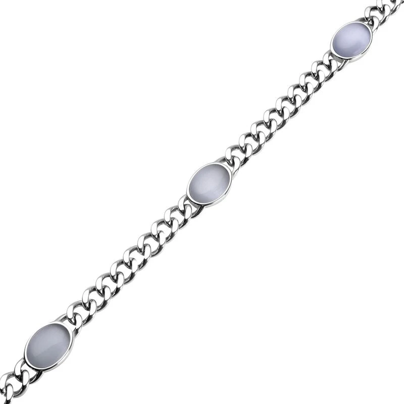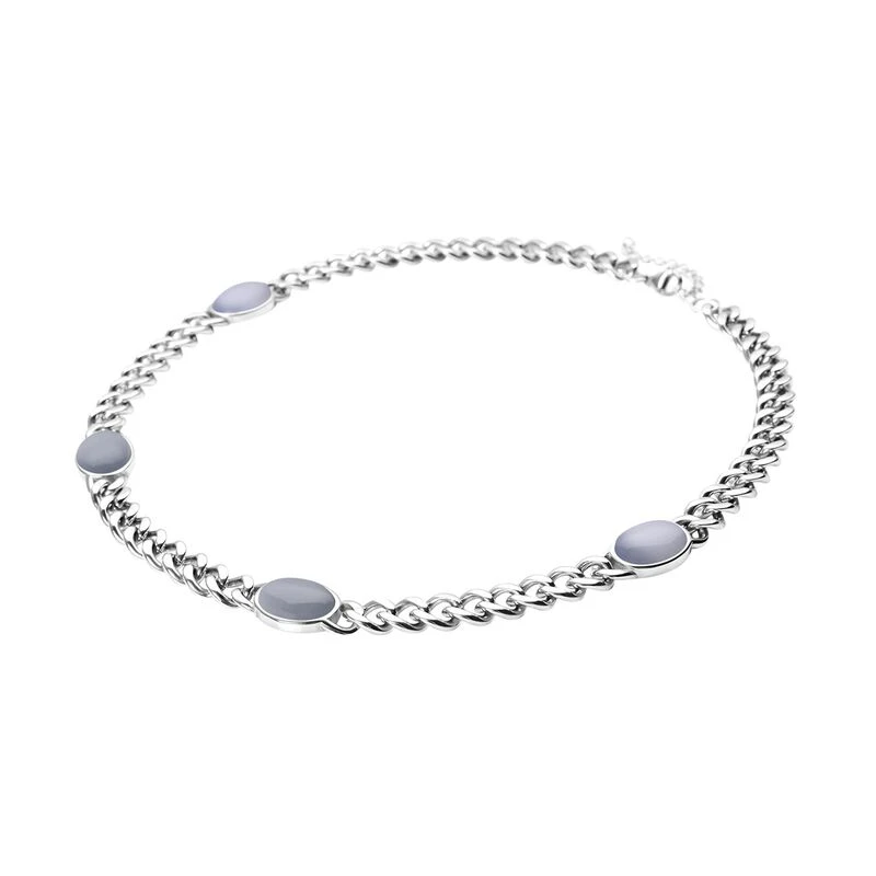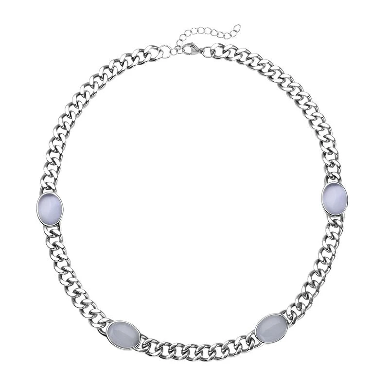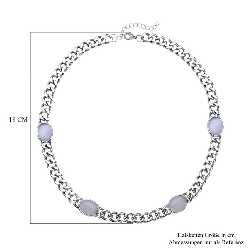 Künstliche, Weiße Katzenaugen Halskette, Ca. 50 Cm, Reiner Edelstahl, Ca. 25,00 Ct