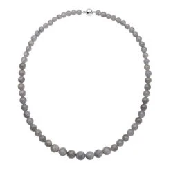 Diese Perlenkette verleiht Ihrem Dekolleté mühelose Eleganz. Sie ist mit 34 facettierten Labradorit-Perlen aufgereiht, die ihr verspieltes Schillern hinzufügen. Ein Magnetverschluss aus rhodiniertem Silber sichert diese 2,5 Gramm Kette.