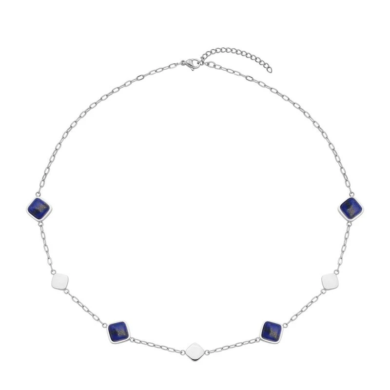 Lapislazuli Halskette, Ca. 50 Cm, Edelstahl Ca. 32.00 Ct