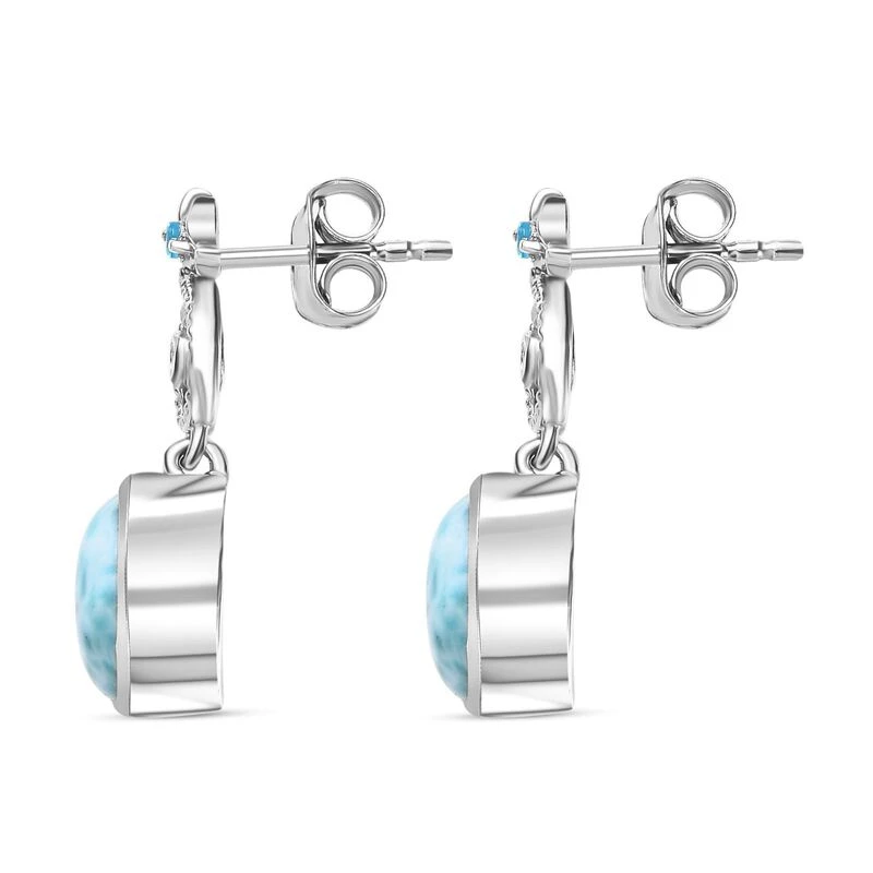 Larimar, Neon Apatit Ohrringe, 925 Silber Platiniert, Ca. 4.49 Ct