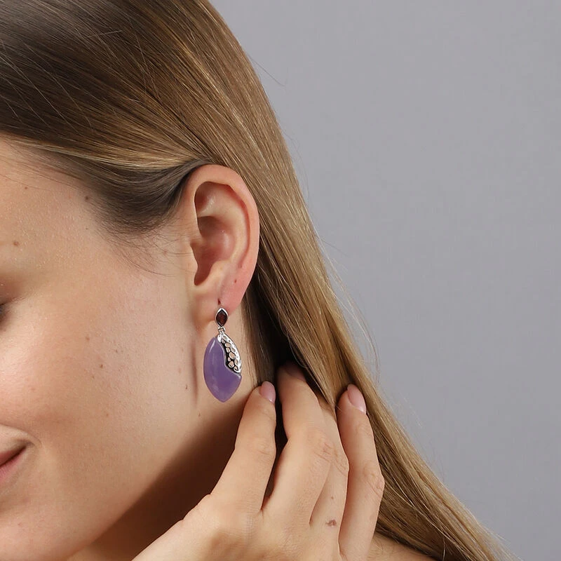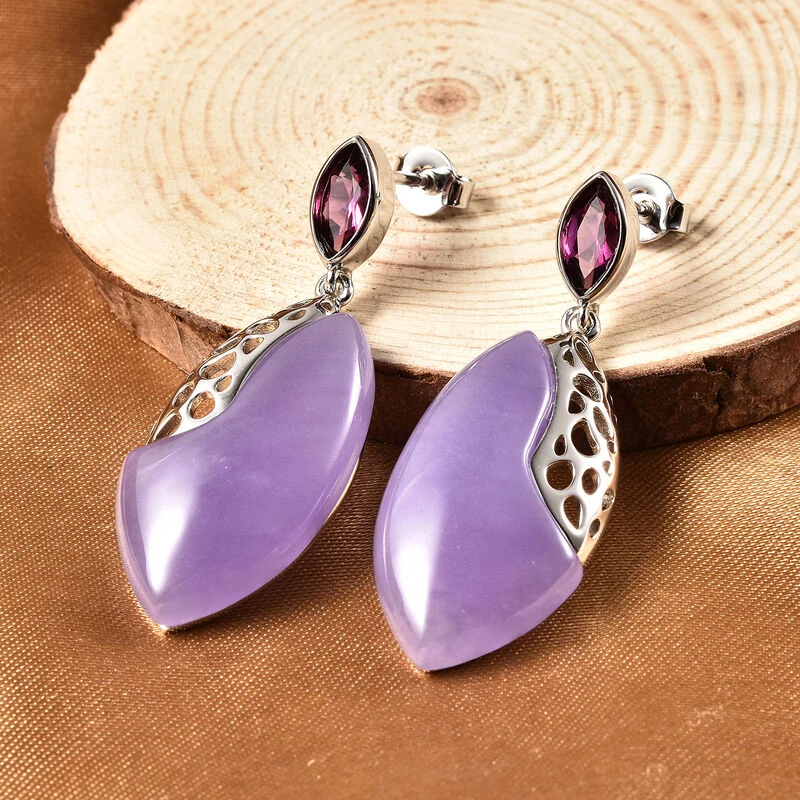 Lila Jade Und Rhodolith Granat Ohrringe 925 Silber Rhodiniert Ca. 27,00 Ct