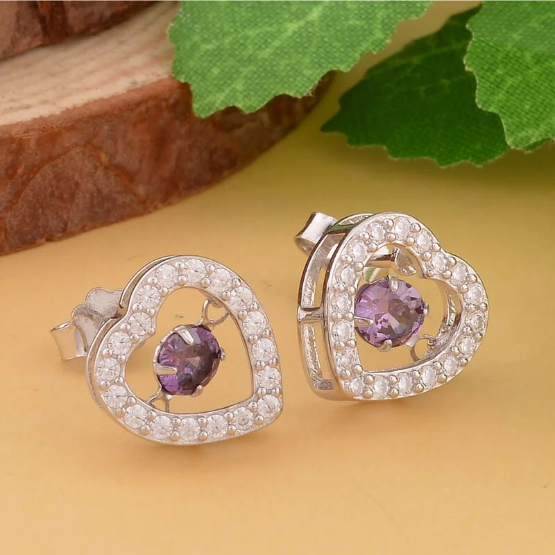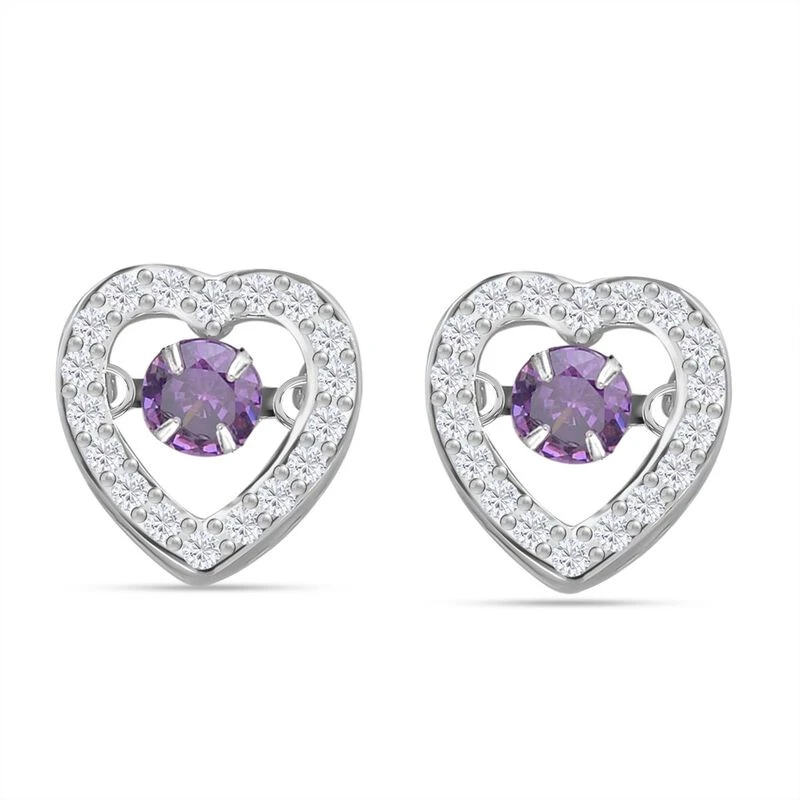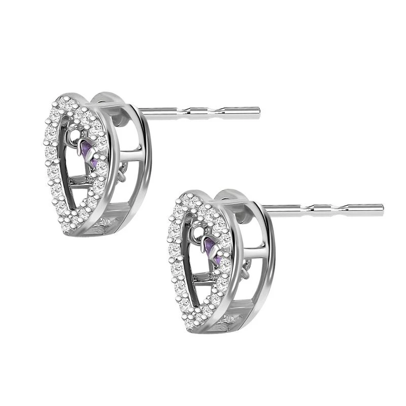 Lila Und Weiße Zirkonia Ohrringe In Herzform, 925 Silber Rhodiniert, Ca. 1.50 Ct