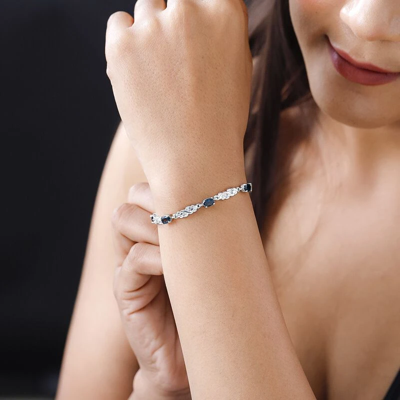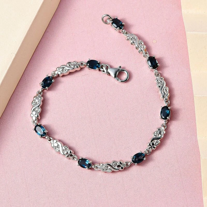 London Blau Topas Armband, Ca. 19 Cm, 925 Silber Platiniert Ca. 4.32 Ct