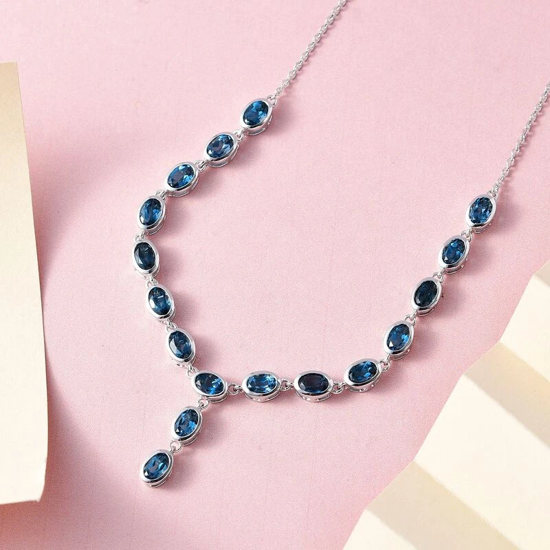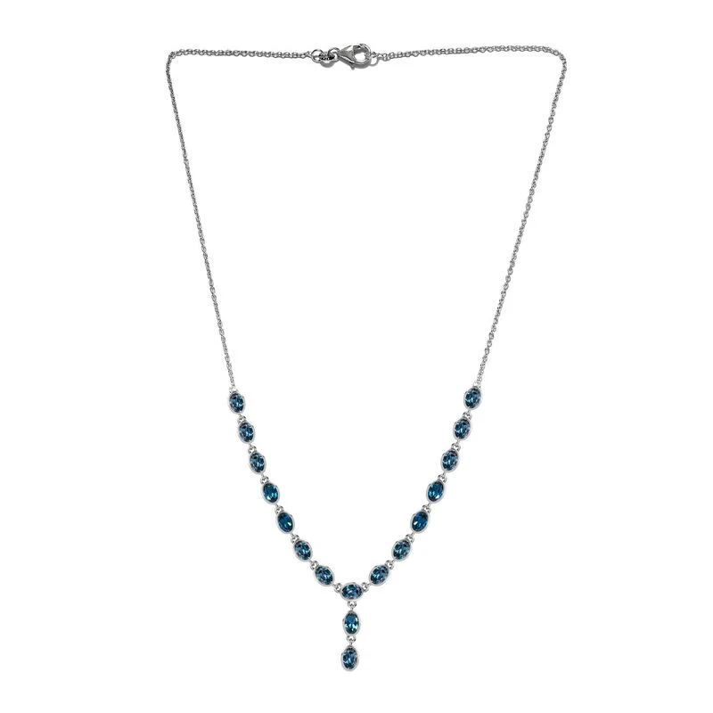 London Blau Topas Collier, Ca. 45 Cm, 925 Silber Platiniert Ca. 9.18 Ct