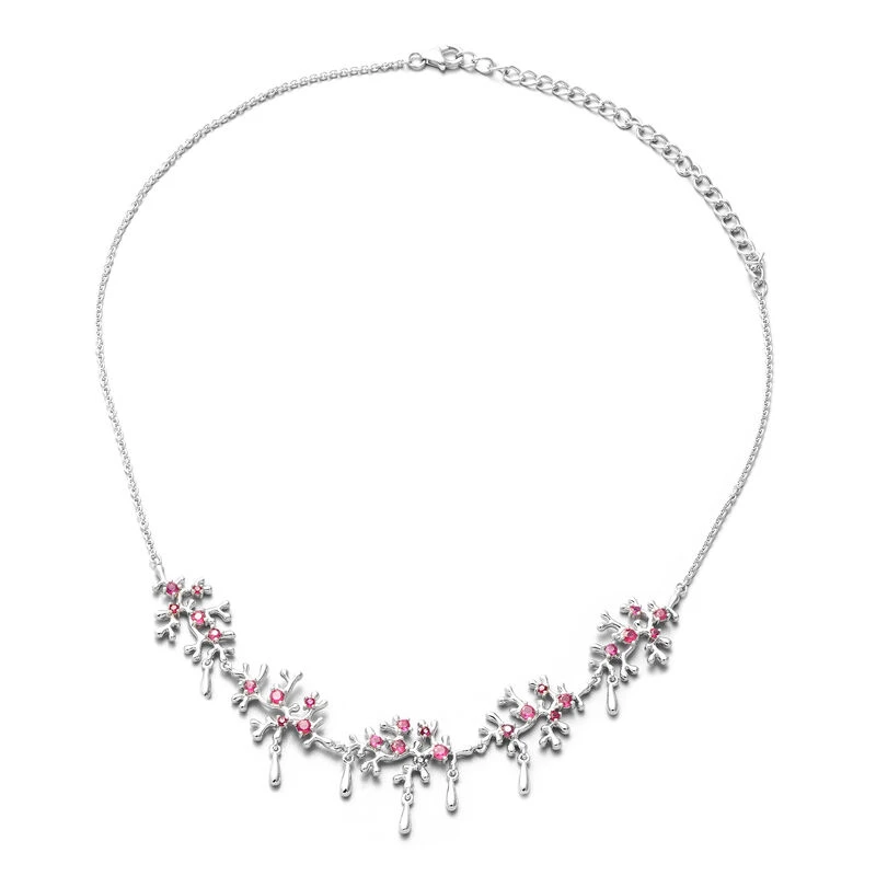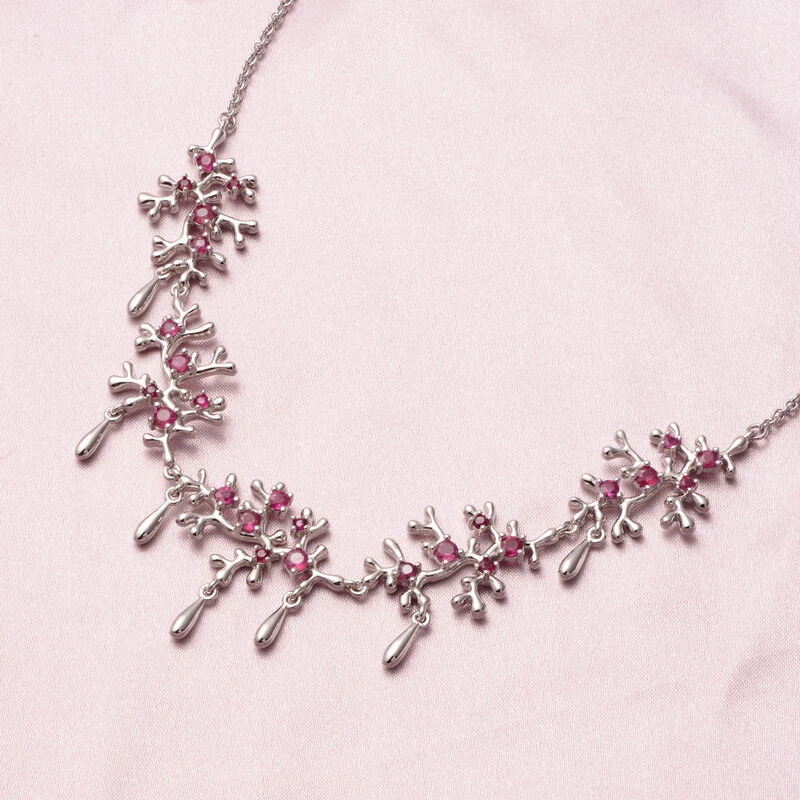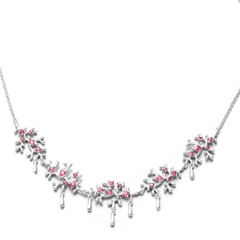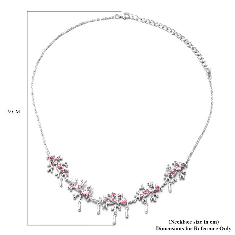 Lucy Q Afrikanische Rubin Halskette, Ca. 50 Cm, (Fissure Gefüllt), 925 Silber Rhodiniert Ca. 2.56 Ct
