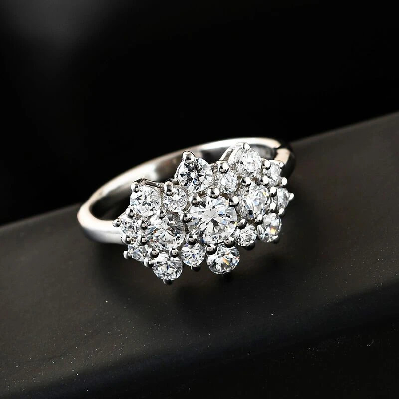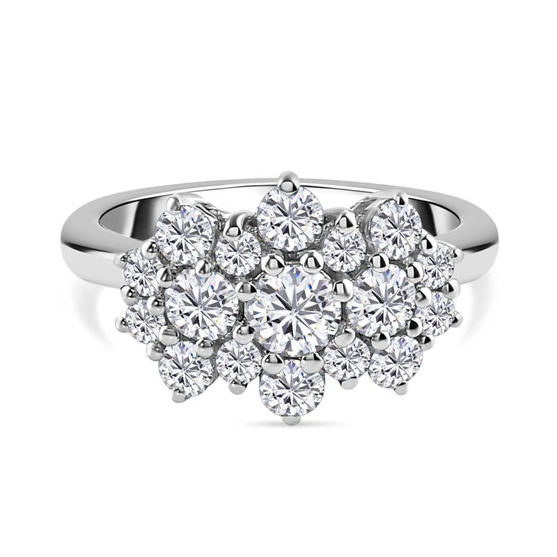 Cluster Ring in platiniertem Silber. Glanz für jedes Budget: Wählen Sie Designs, die Ihnen einen exklusiven Look verleihen!