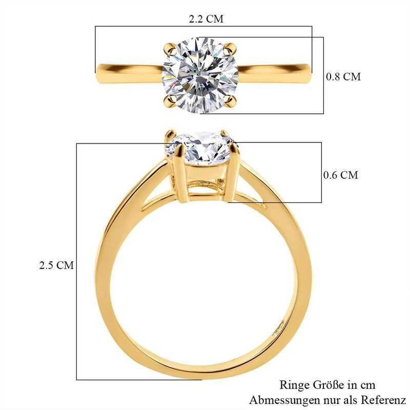 Lustro Stella – Weißer Zirkonia Ring, 925 Silber Vergoldet (Größe 16.00) Ca. 2.15 Ct