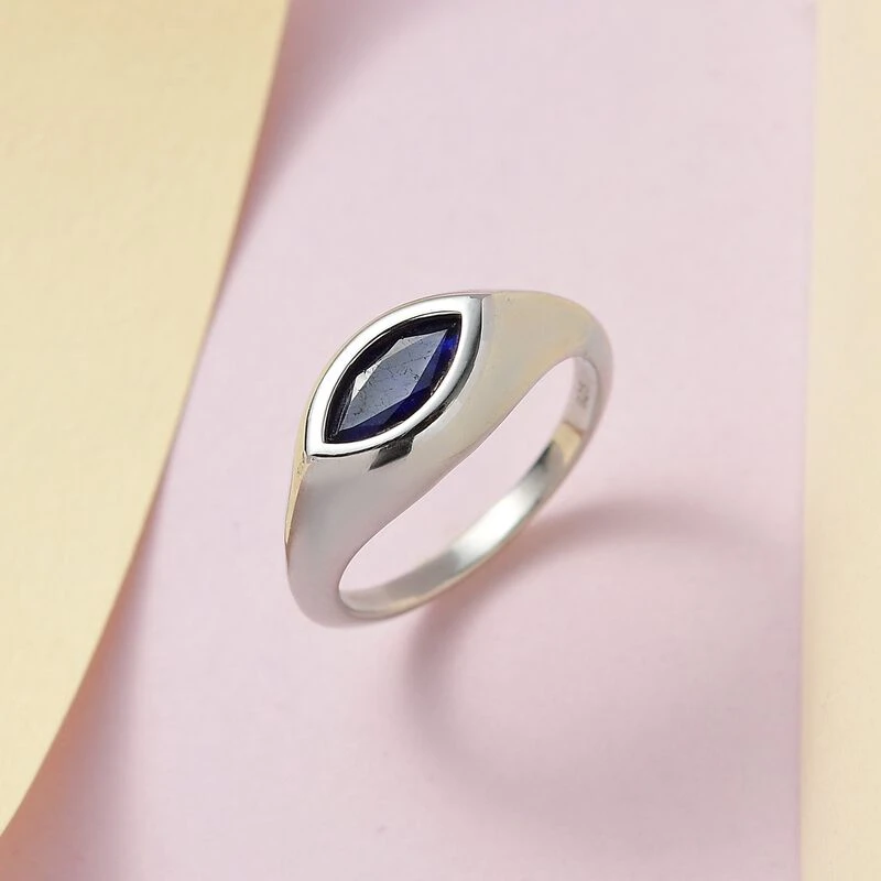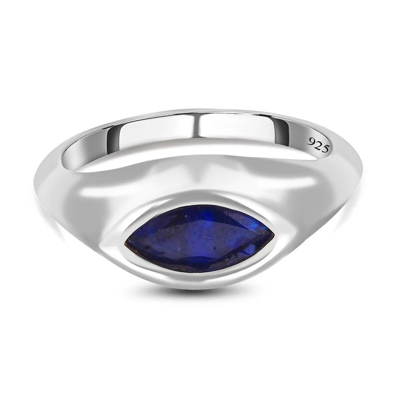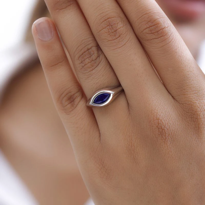 Solitär-Ring in platiniertem Silber. Der Geburtsstein des Monats September: Dieser klassische Ring verleiht Ihren Händen die königlichen Farbtöne des Saphirs.