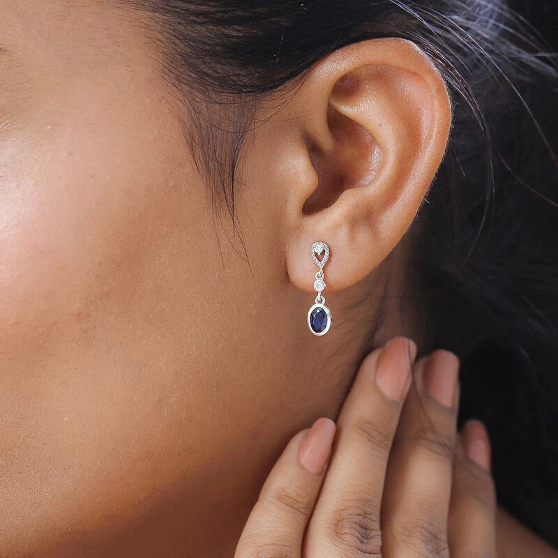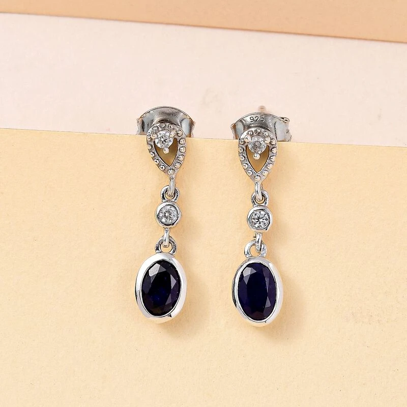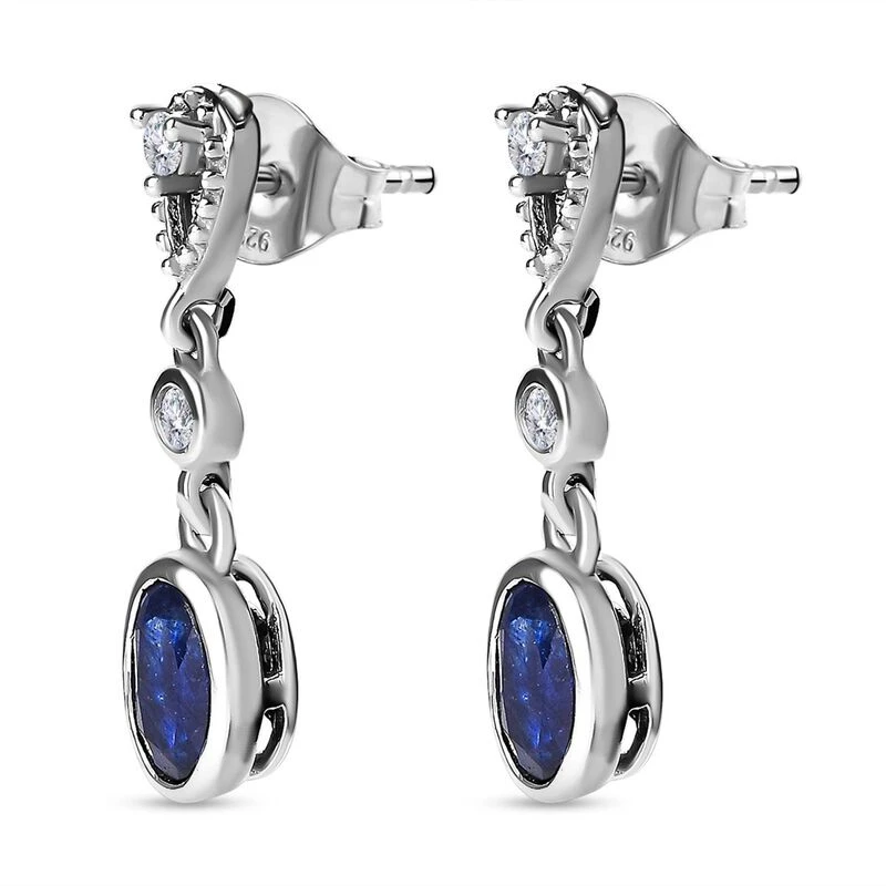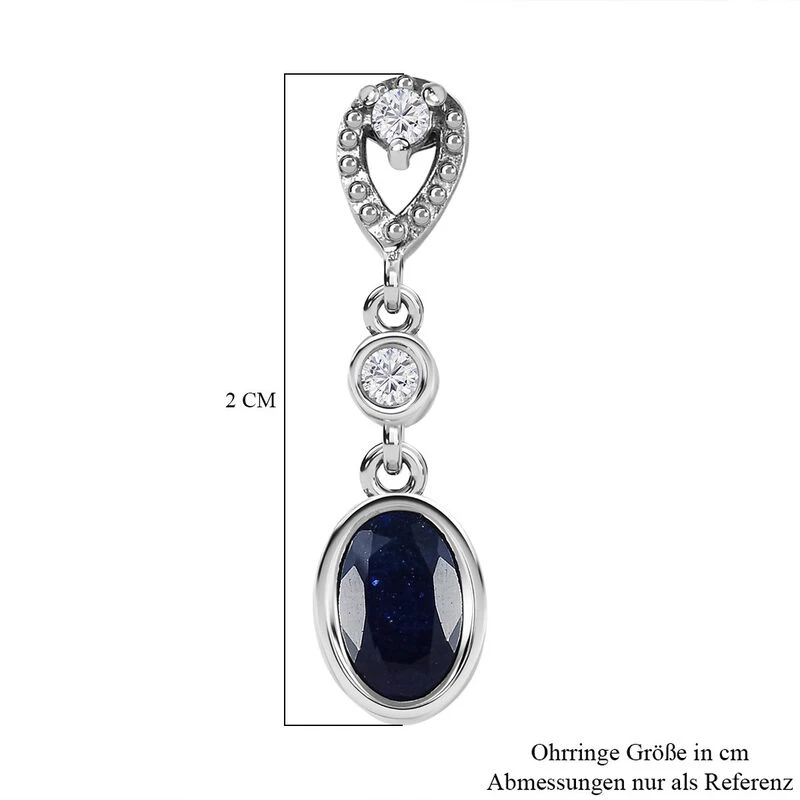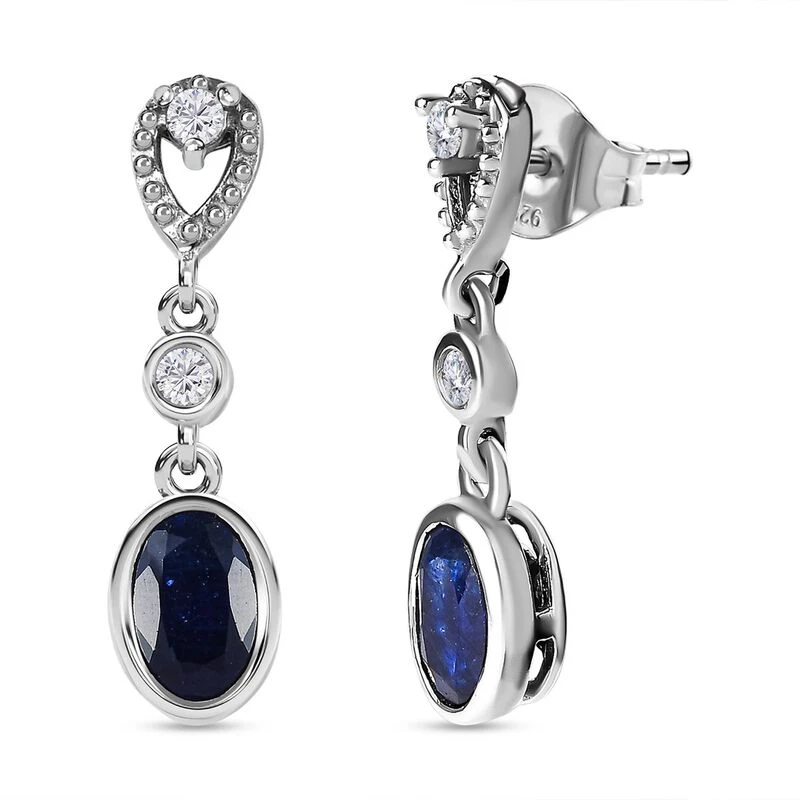 Masoala Saphir (Fissure Gefüllt), Weißer Zirkon Ohrringe, 925 Silber Platiniert Ca. 1.54 Ct