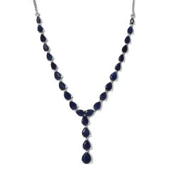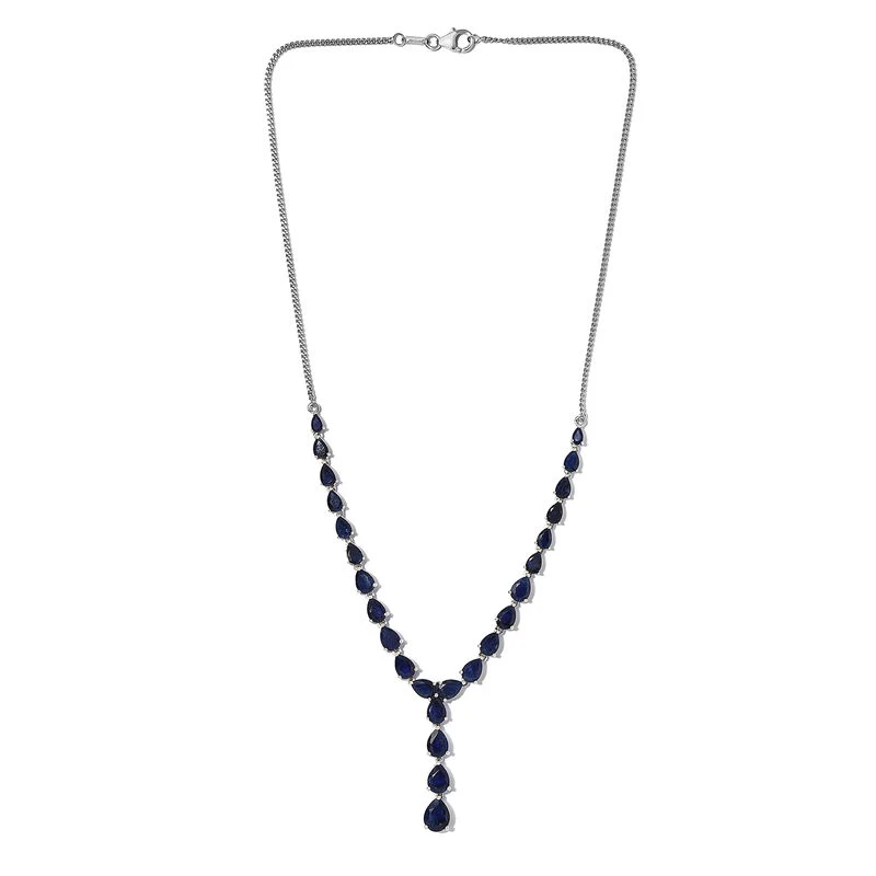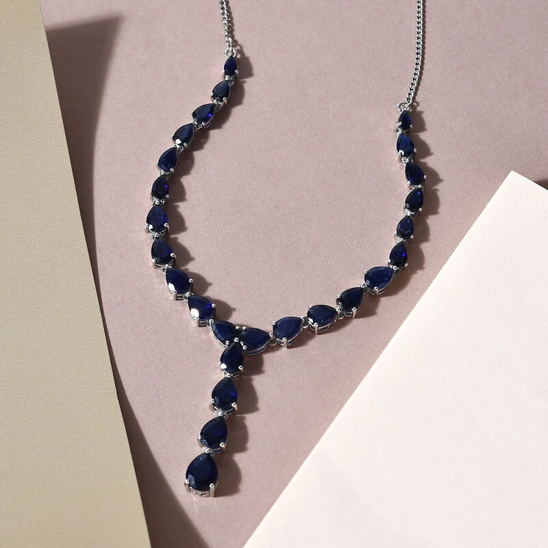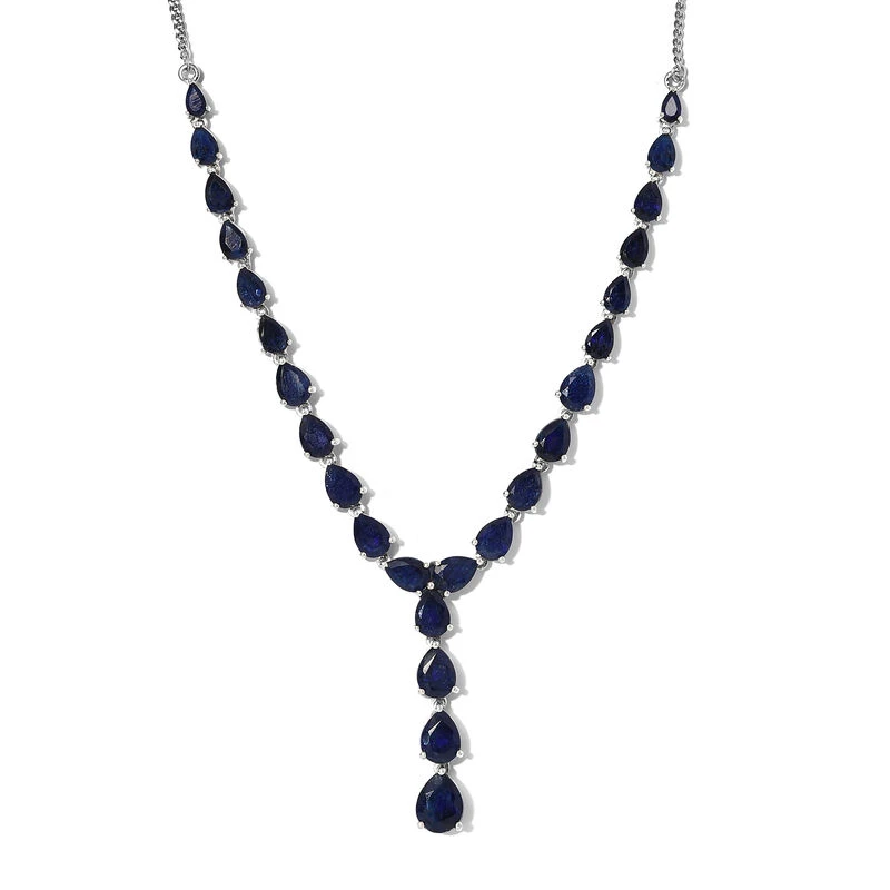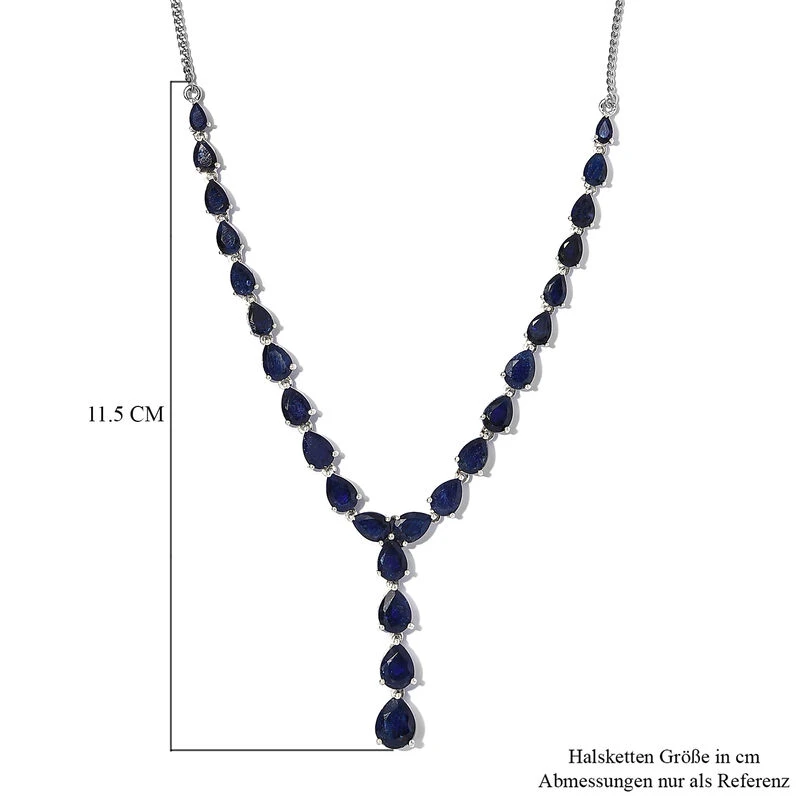 Masoala Saphir-Halskette, (Fissure Gefüllt), Ca. 45 Cm, 925 Silber Platiniert Ca. 24.01 Ct