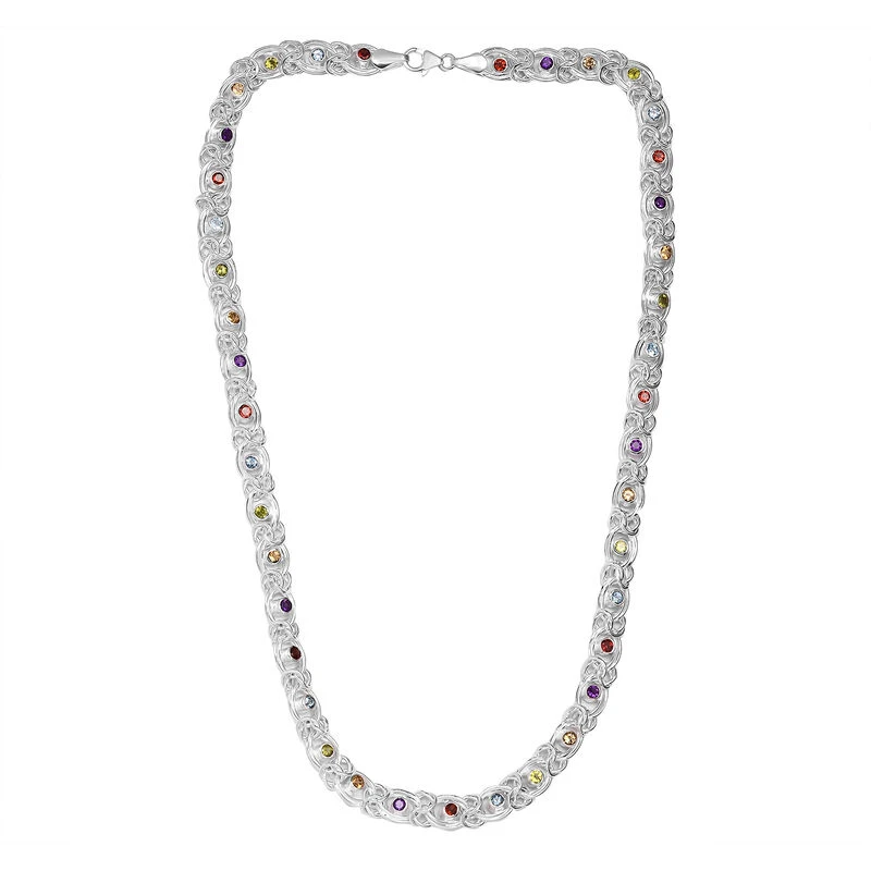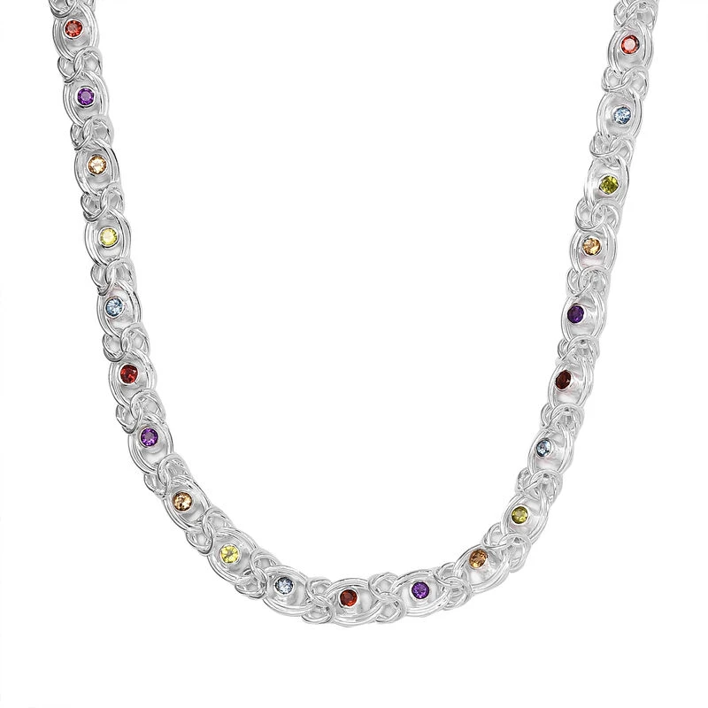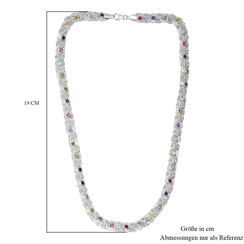 Mehrfarbige, Edelstein Königs-Halskette, 50 Cm, 925 Silber (ca. 51,33g) Ca. 5.53 Ct