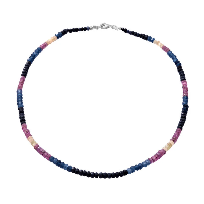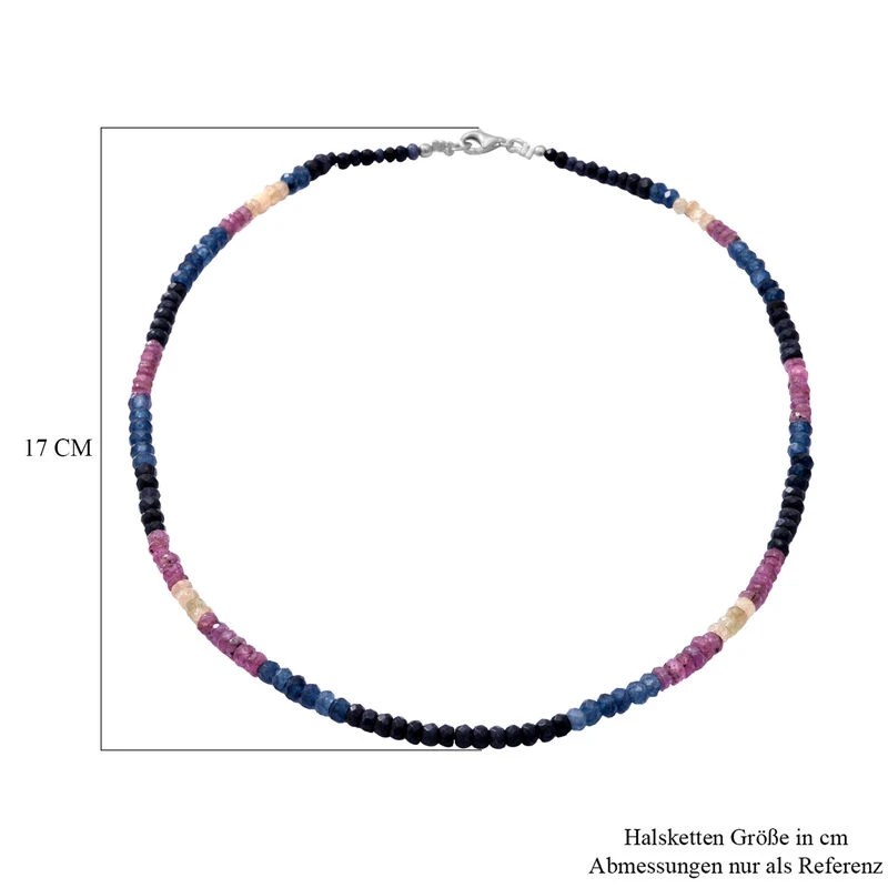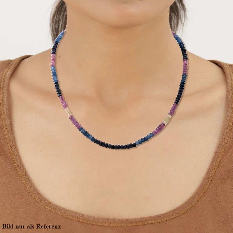 Mehrfarbige Saphir-Halskette, Ca. 45 Cm, 925 Silber Ca. 110.00 Ct