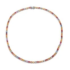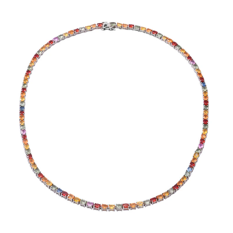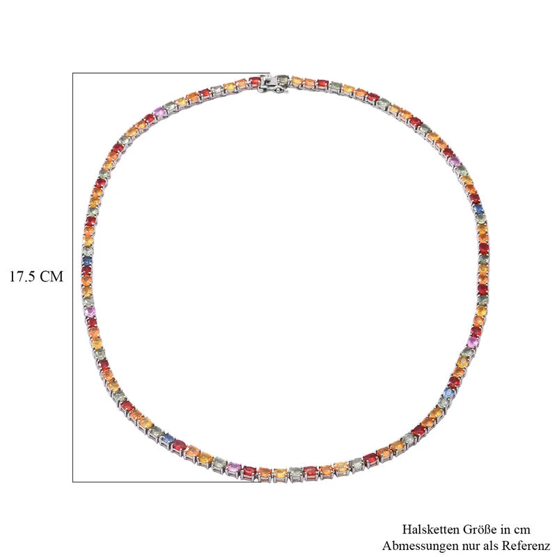 Mehrfarbige Saphir-Halskette, Ca. 45 Cm, 925 Silber Platiniert Ca. 24.15 Ct