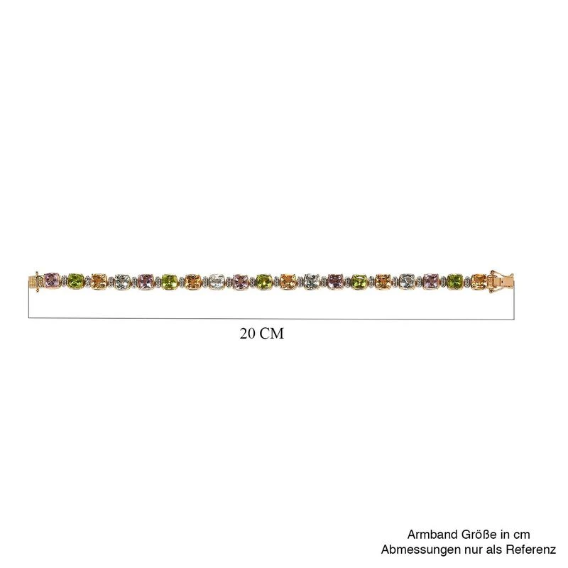 Mehrfarbiges Edelstein Armband Ca. 19 Cm 925 Silber Vergoldet Ca. 20.01 Ct