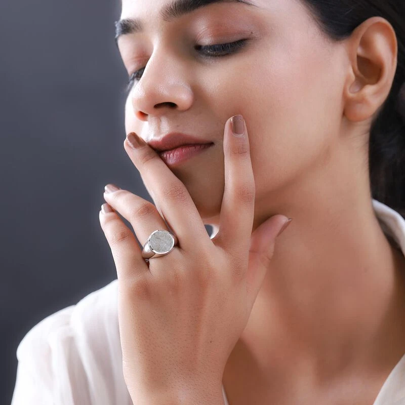Meteorit-Ring, 925 Silber Platiniert (Größe 17.00) Ca. 12.70 Ct