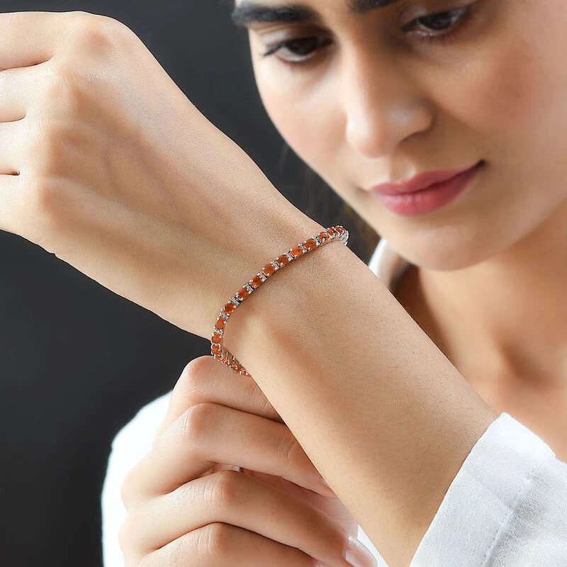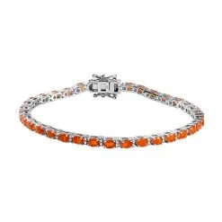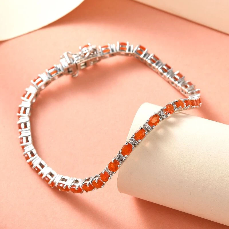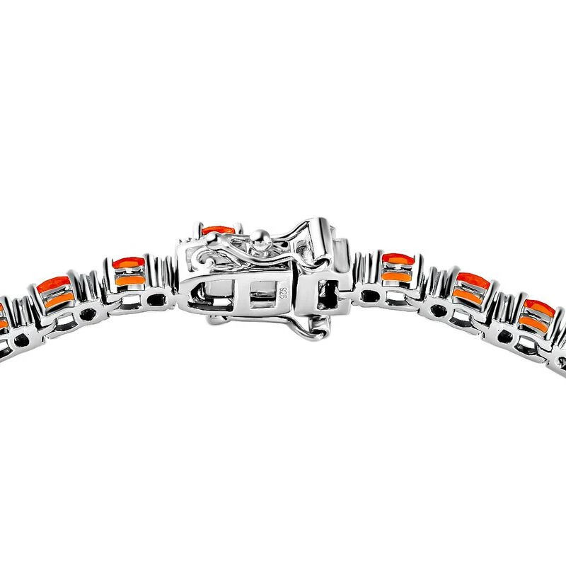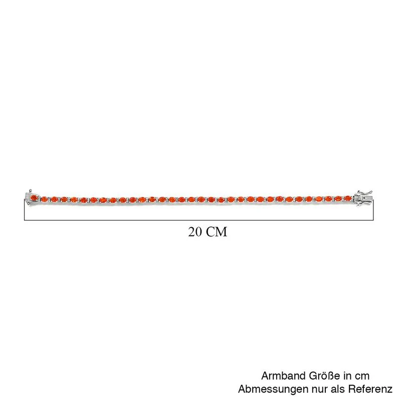 Mexikanisches Crimson Feueropal Und Weißes Zirkon-Armband, Ca. 19 Cm, 925 Silber Platiniert Ca. 4.72 Ct