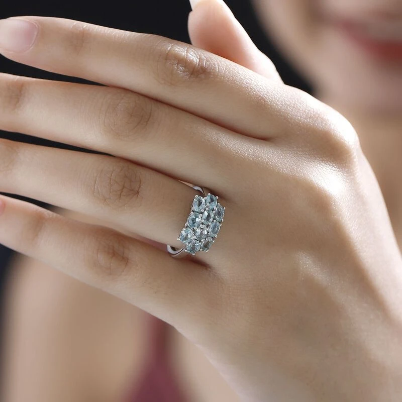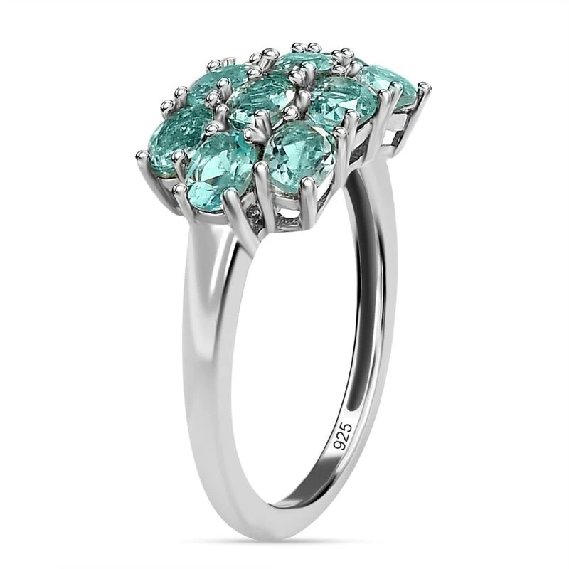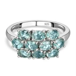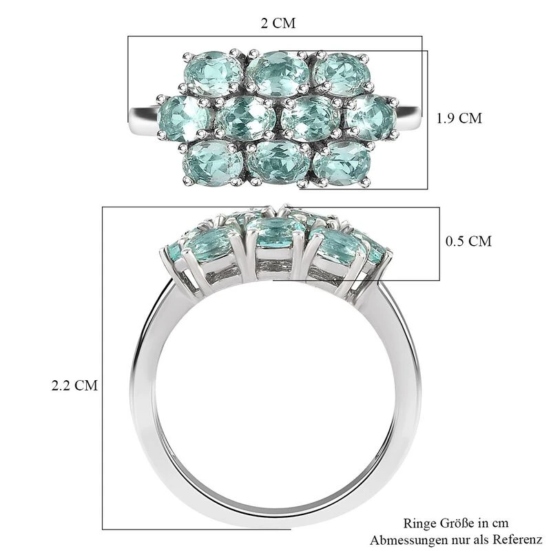 Dieser vielseitige Ring für Damen, der Sie vom Schreibtisch bis zur Tanzfläche begleitet, ist eine Definition von Schönheit. 10 erfrischende Minz-Apatite sind auf diesem Ring aus 2,6 Gramm platiniertem Silber in einer Krappenfassung gefasst.