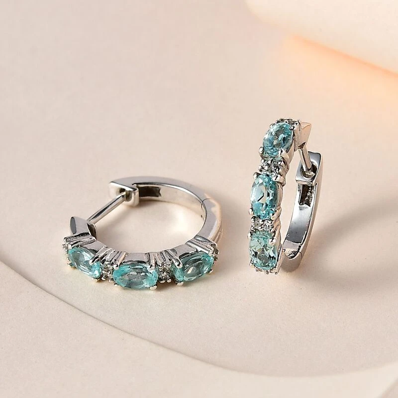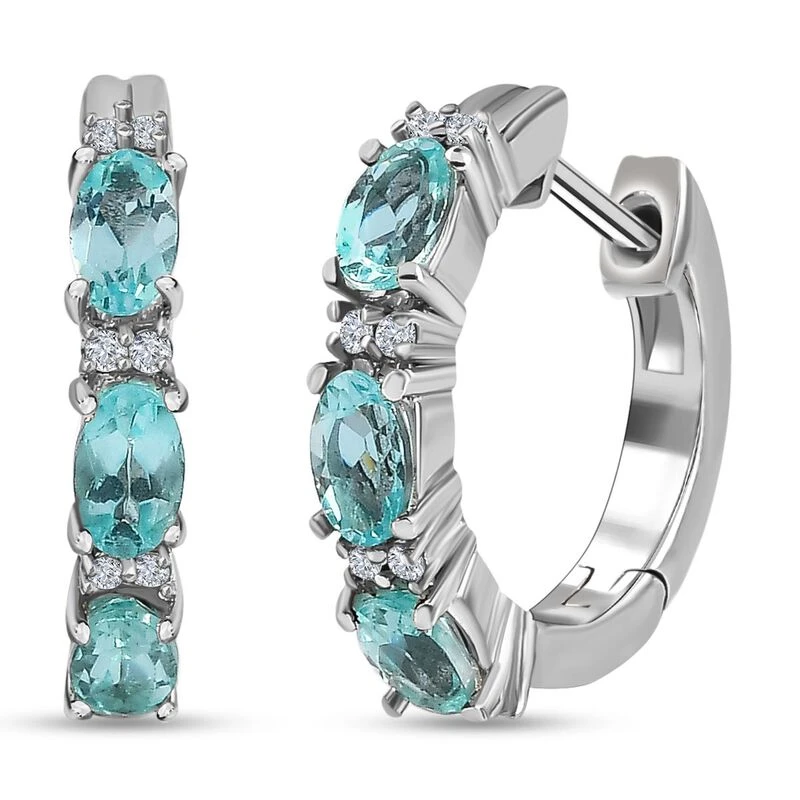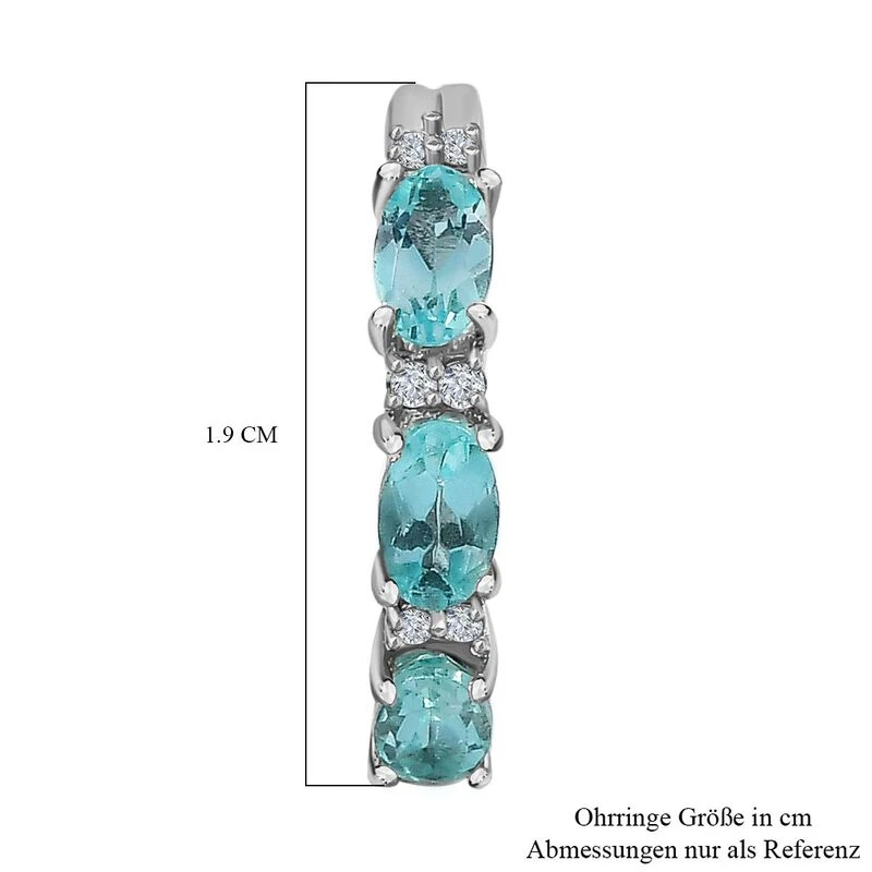 Minz Apatit, Weißer Zirkon Ohrringe, 925 Silber Platiniert Ca. 1.73 Ct