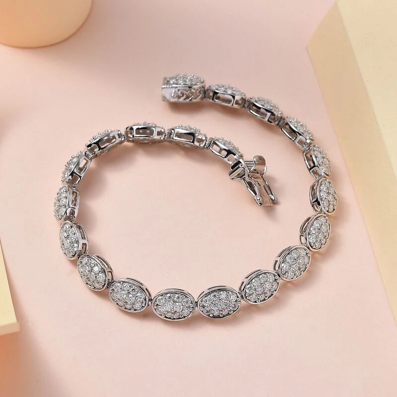 Moissanit Armband, Ca. 19 Cm 925 Silber Platiniert, Ca. 7.85 Ct