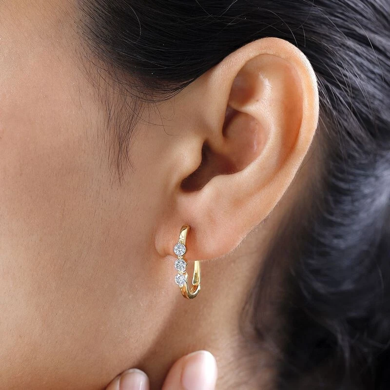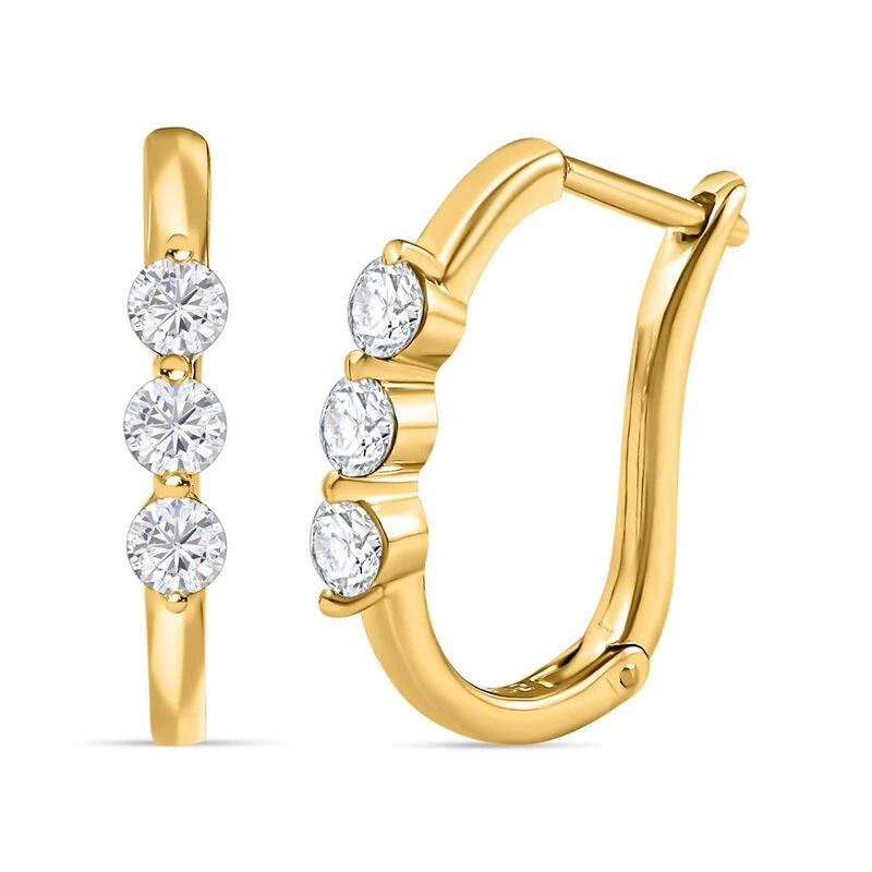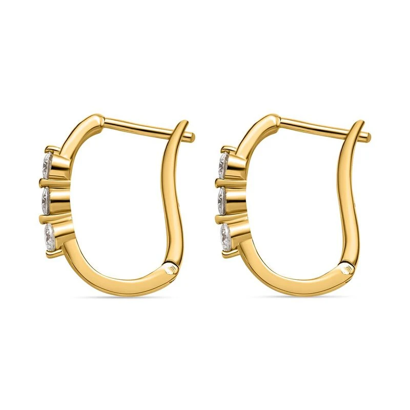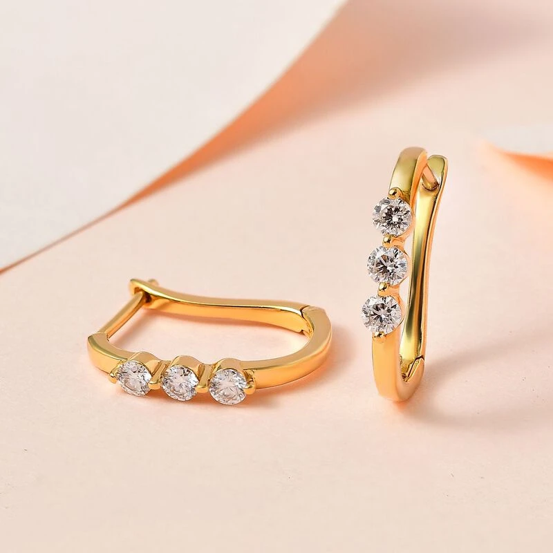 Verleihen Sie Ihren Looks mit diesen Moissanit-Ohrringen für Damen ein zauberhaftes Funkeln. 6 Moissanite in einer Zargenfassung repräsentieren die Vergangenheit, Gegenwart und Zukunft der Trägerin in einem Schmuckdesign aus 2,8 Gramm vergoldetem Silber. Ein französischer Clip-Verschluss sichert diese Moissanit-Ohrringe.