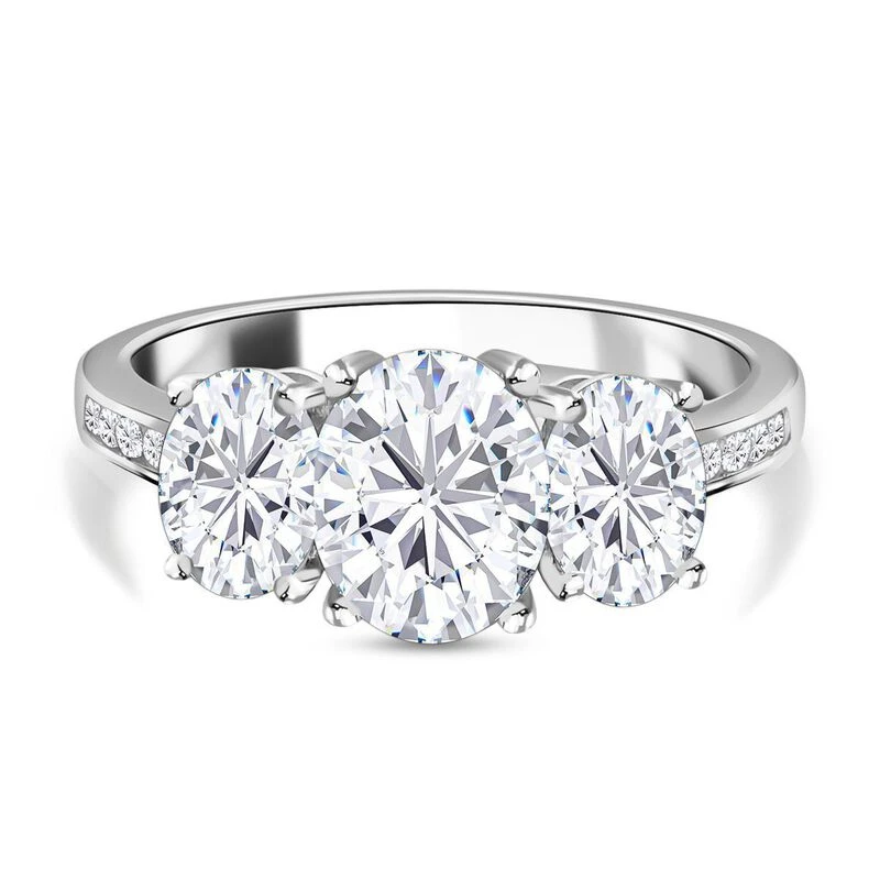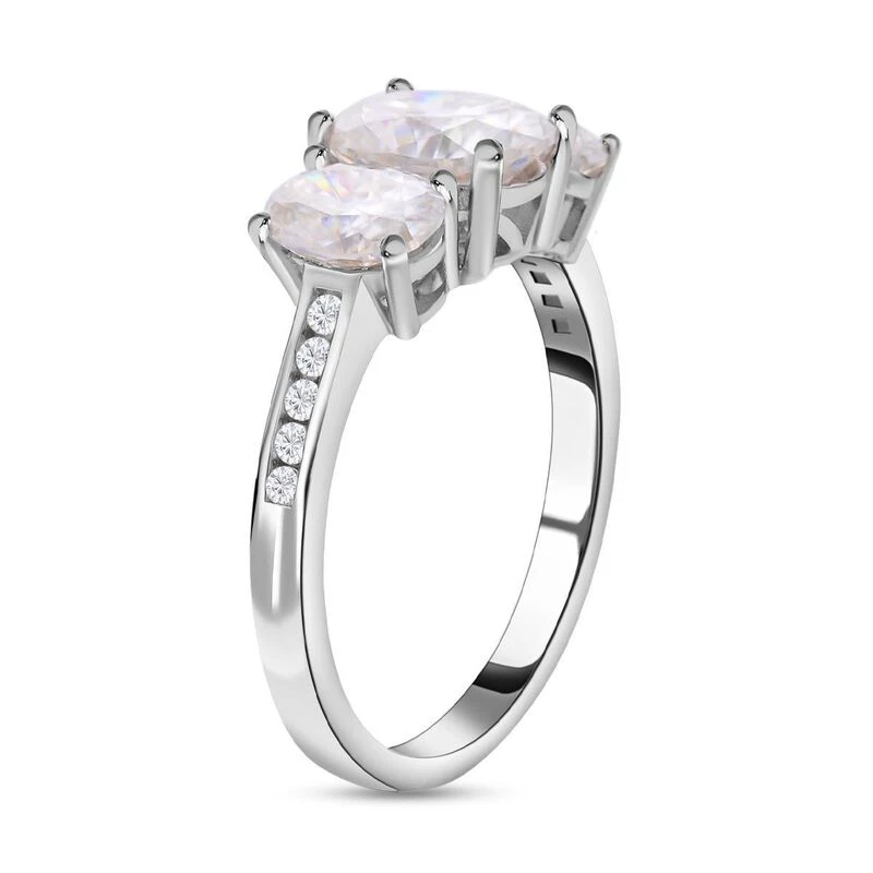 Moissanit Ring, 925 Silber Rhodiniert (Größe 16.00) Ca. 4.07 Ct